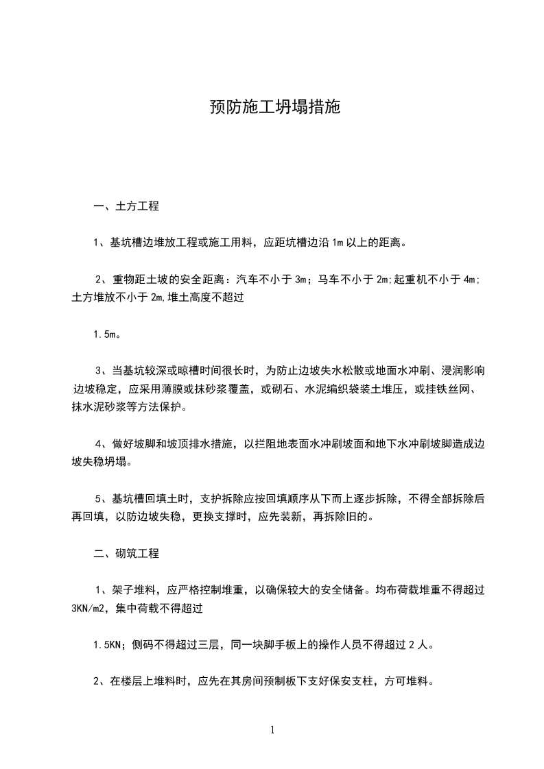 2、重物距土坡的安全距离:汽车不小于3m;马车不小于2m;起重机不小于4m;土方堆放不小于2m,堆土高度不超过