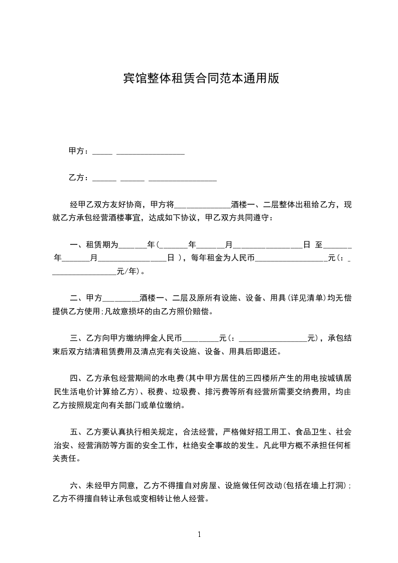 二、甲方_________酒楼一、二层及原所有设施、设备、用具(详见清单)均无偿提供乙方使用;凡故意损坏的由乙方照价赔偿。