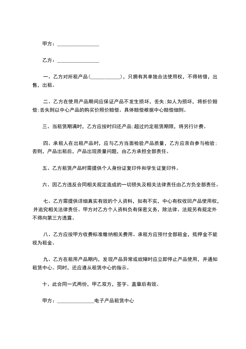 甲方:_______________电子产品租赁中心