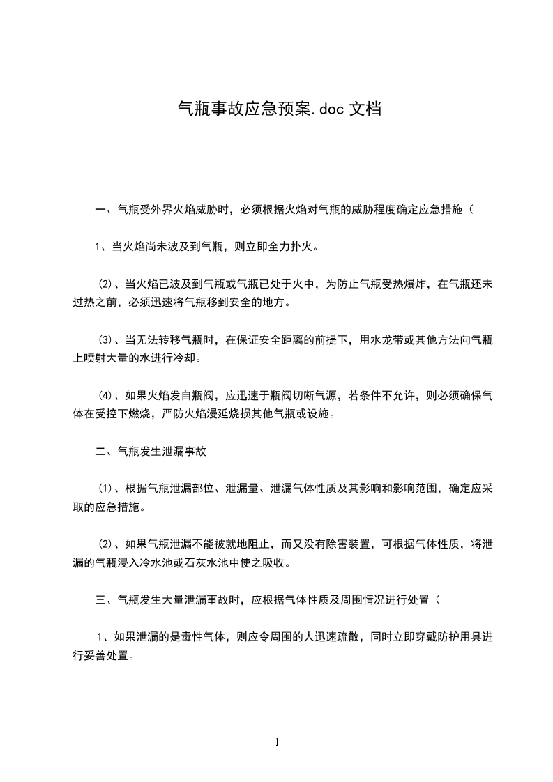 (1)、根据气瓶泄漏部位、泄漏量、泄漏气体性质及其影响和影响范围,确定应采取的应急措施。