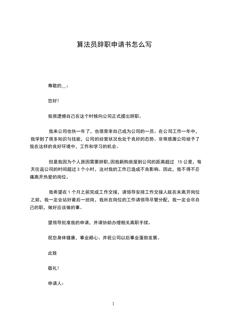 算法员辞职申请书怎么写