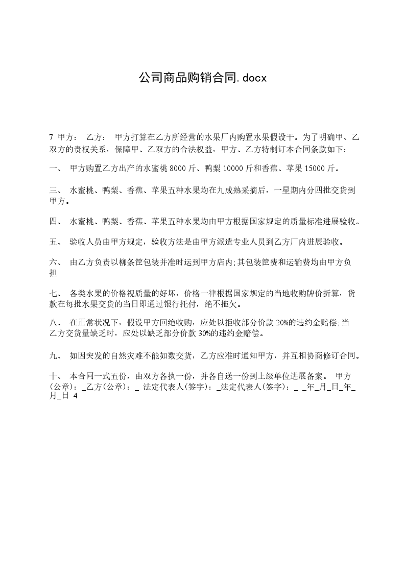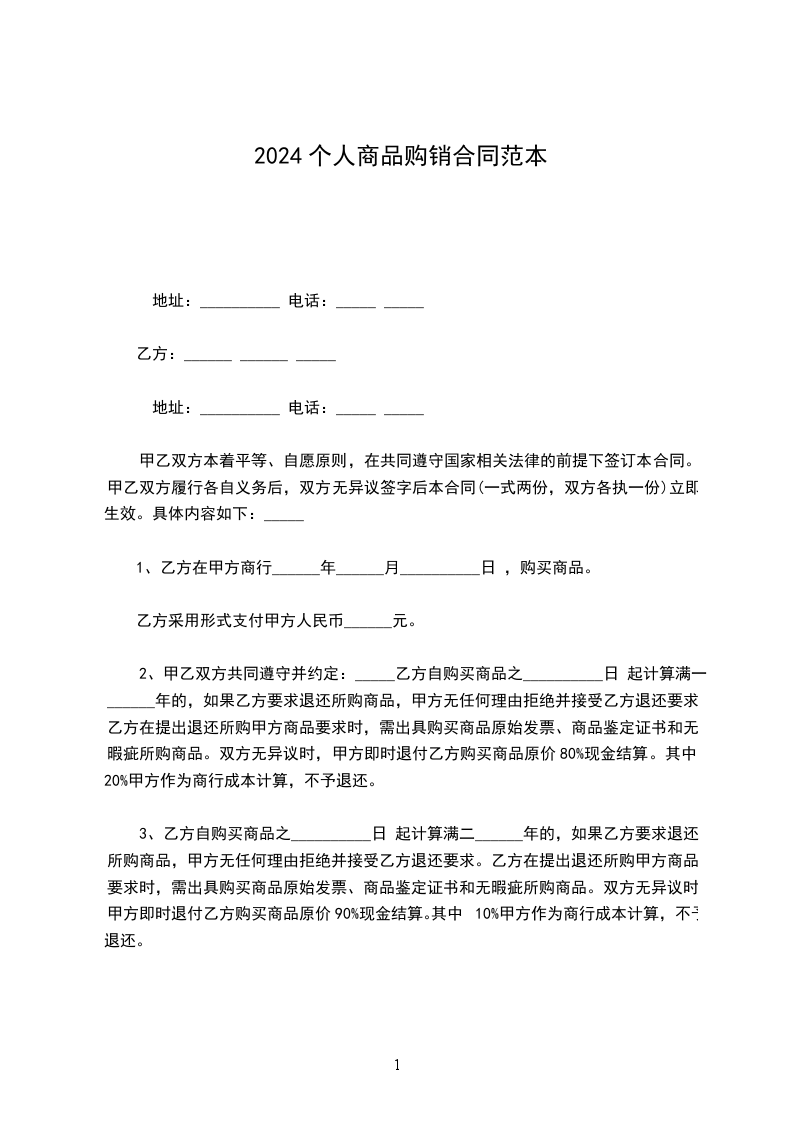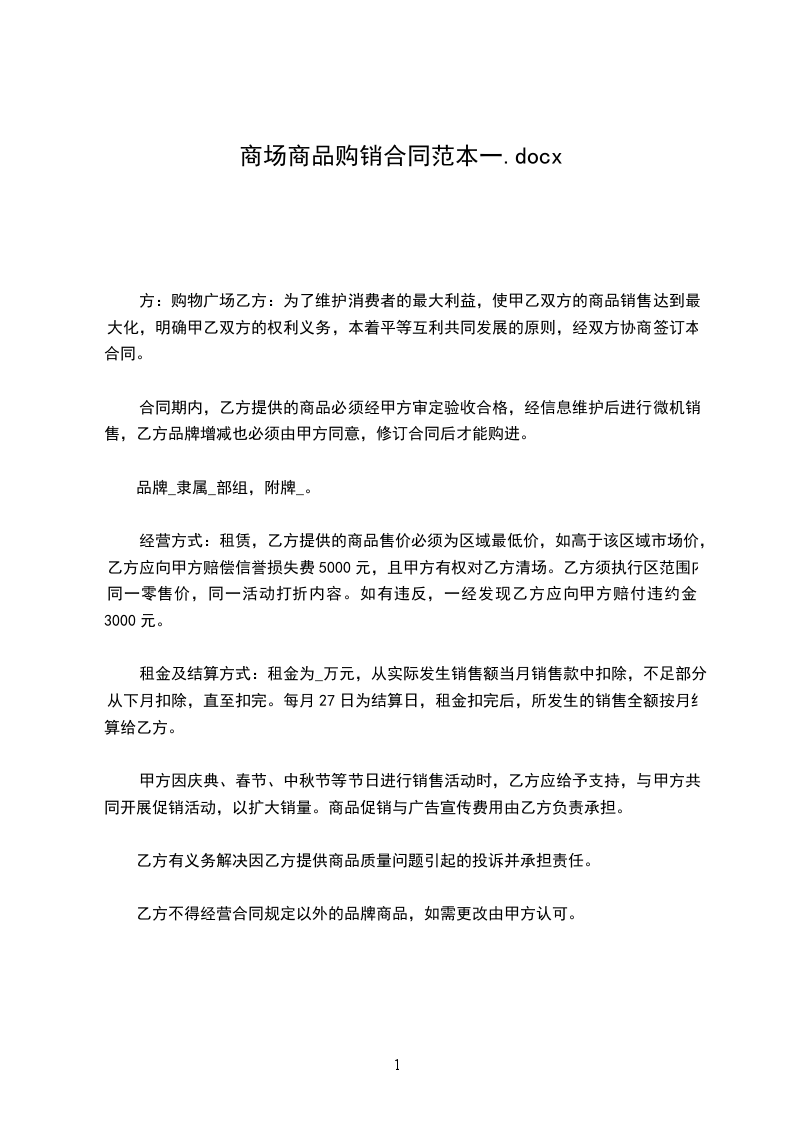 1、乙方在甲方商行_年_于,购买商品。乙方采用形式支付甲方人民币_元。
