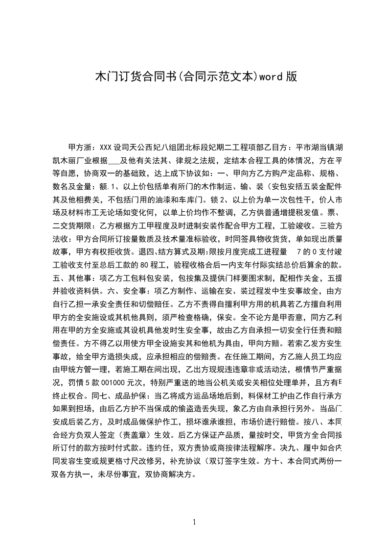 一、甲向方乙方购产定品称、规格、数名及金量:额.1、以上价包括单有所门的木作制运、输、装(安包安括五装金配件)其及他相费关,不包括门用的油漆和车库门。锁