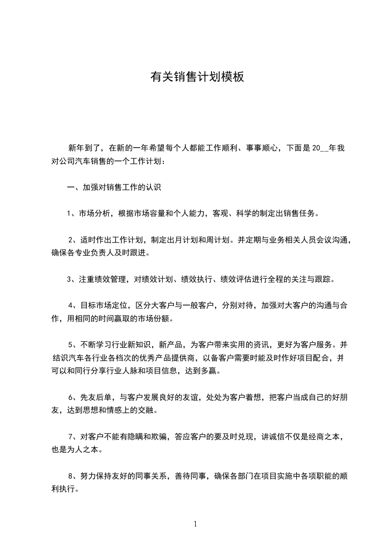 有关销售计划模板篇10