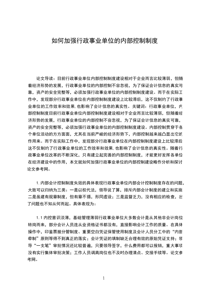 论文导读:目前行政事业单位内部控制制度建设相对于企业而言比较薄弱,但随着经济形势的发展,行政事业单位的内部控制不容忽视,为了保证会计信息的真实可靠,资产的安全完整等,必须加强行政事业单位的内部控制制度建设。而于在实际工作中,发现部分行政事业单位在内部控制制度建设上比较滞后,这不仅制约了行政事业单位的工作效率和效果,也影响了会计信息的真实性。关键词:行政事业单位,内部控制制度目前行政事业单位内部控制制度建设相对于企业而言比较薄弱,但随着经济形势的发展,行政事业单位的内部控制不容忽视,为了保证会计信息的真实可靠,资产的安全完整等,必须加强行政事业单位的内部控制制度建设。内部控制贯穿于各个单位活动的方方面面,尤其在当前严峻的经济形势下,内部控制越来越凸显出它的作用来。而于在实际工作中,发现部分行政事业单位在内部控制制度建设上比较滞后,这不仅制约了行政事业单位的工作效率和效果,也影响了会计信息的真实性。随着行政事业单位改革的不断深化,只有建立起完善的内部控制制度,才能更好发挥各单位在经济建设中的作用,本文就如何加强行政事业单位的内部控制建设略作分析和探讨。论文参考网。