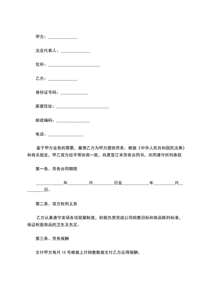 鉴于甲方业务的需要,雇佣乙方为甲方提供劳务。根据《中华人民共和国民法典》和有关规定,甲乙双方经平等协商一致,自愿签订本劳务合同书,共同遵守所列条款。