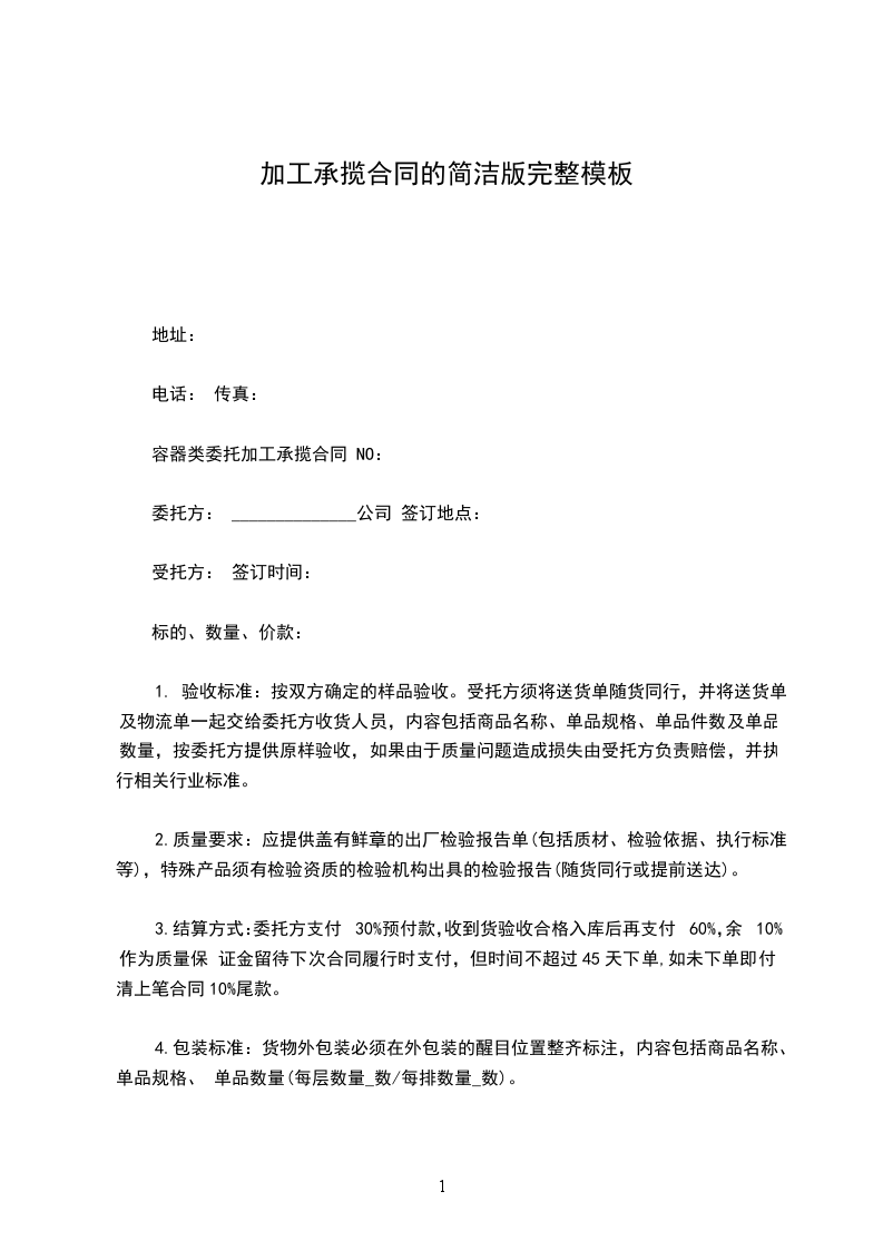 容器类委托加工承揽合同 NO: