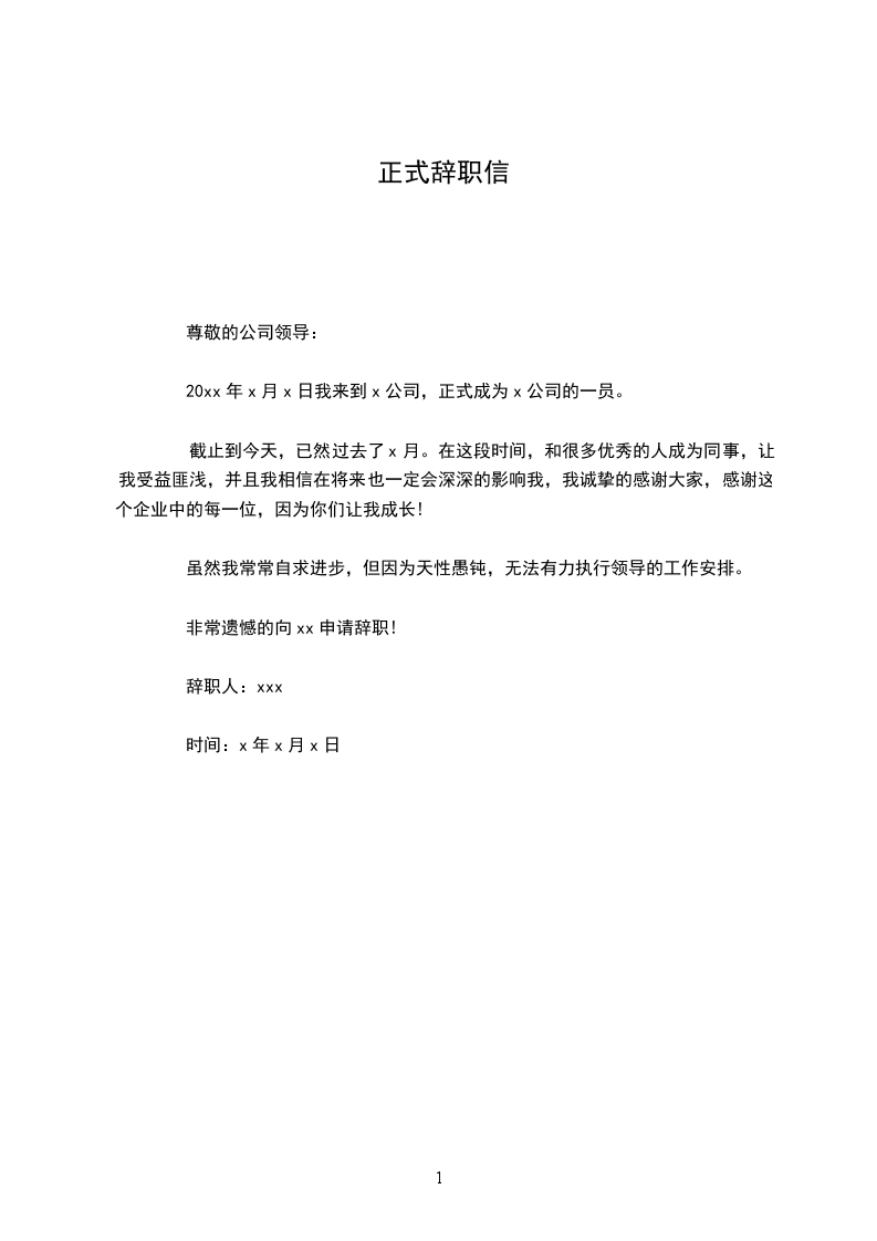 辞职人:xxx