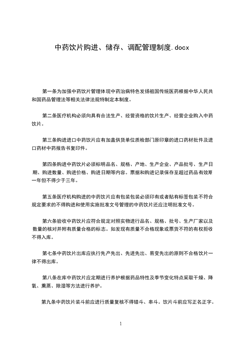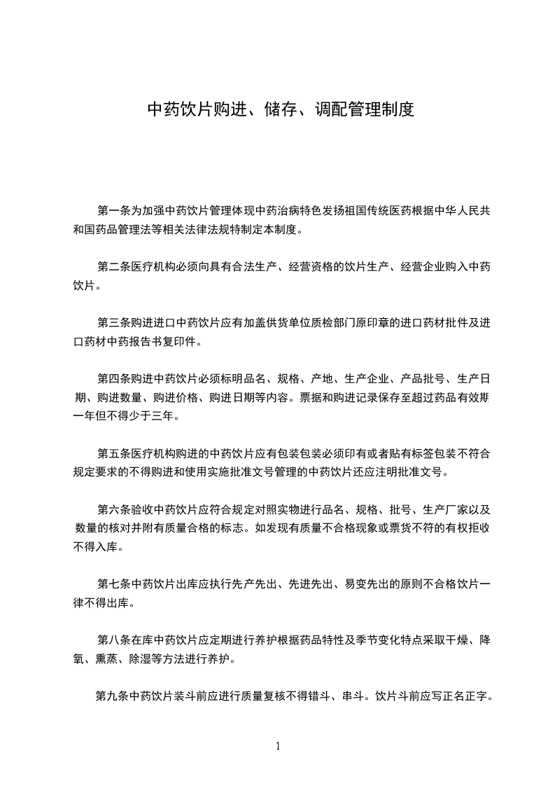 第一条为加强中药饮片管理体现中药治病特色发扬祖国传统医药根据中华人民共和国药品管理法等相关法律法规特制定本制度。