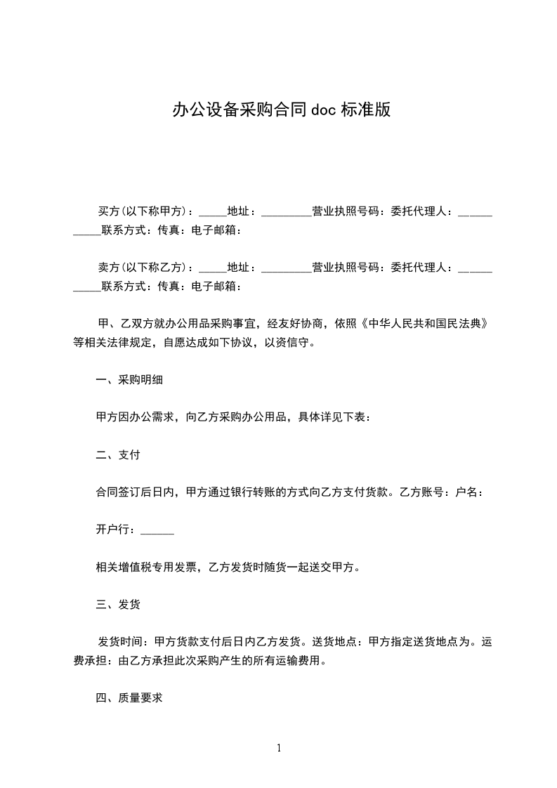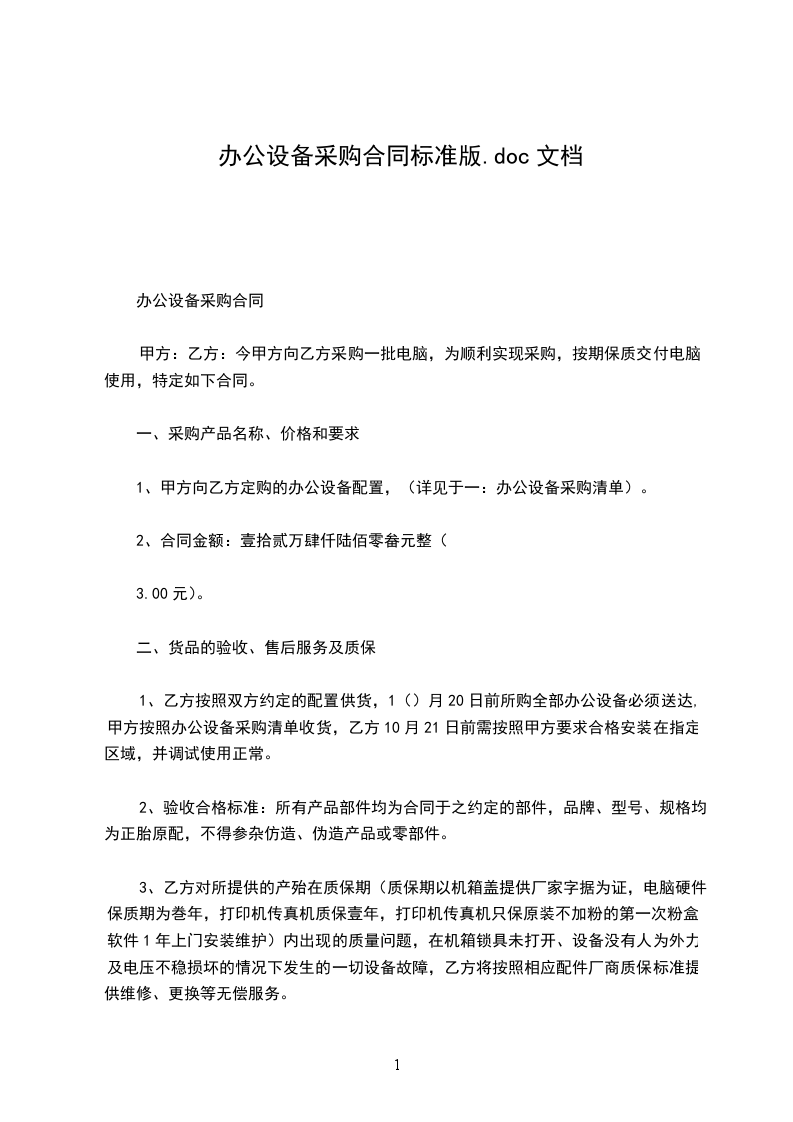 办公设备采购合同