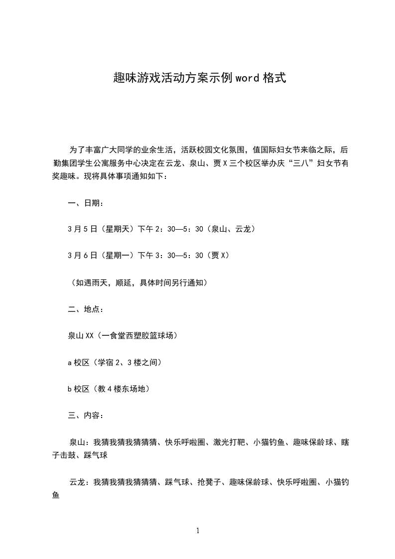 为了丰富广大同学的业余生活,活跃校园文化氛围,值国际妇女节来临之际,后勤集团学生公寓服务中心决定在云龙、泉山、贾X三个校区举办庆“三八”妇女节有奖趣味。现将具体事项通知如下: