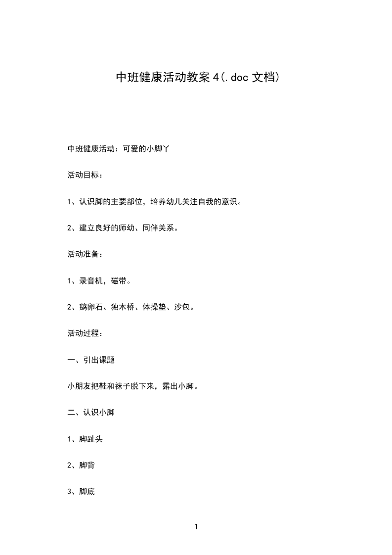 中班健康活动:可爱的小脚丫