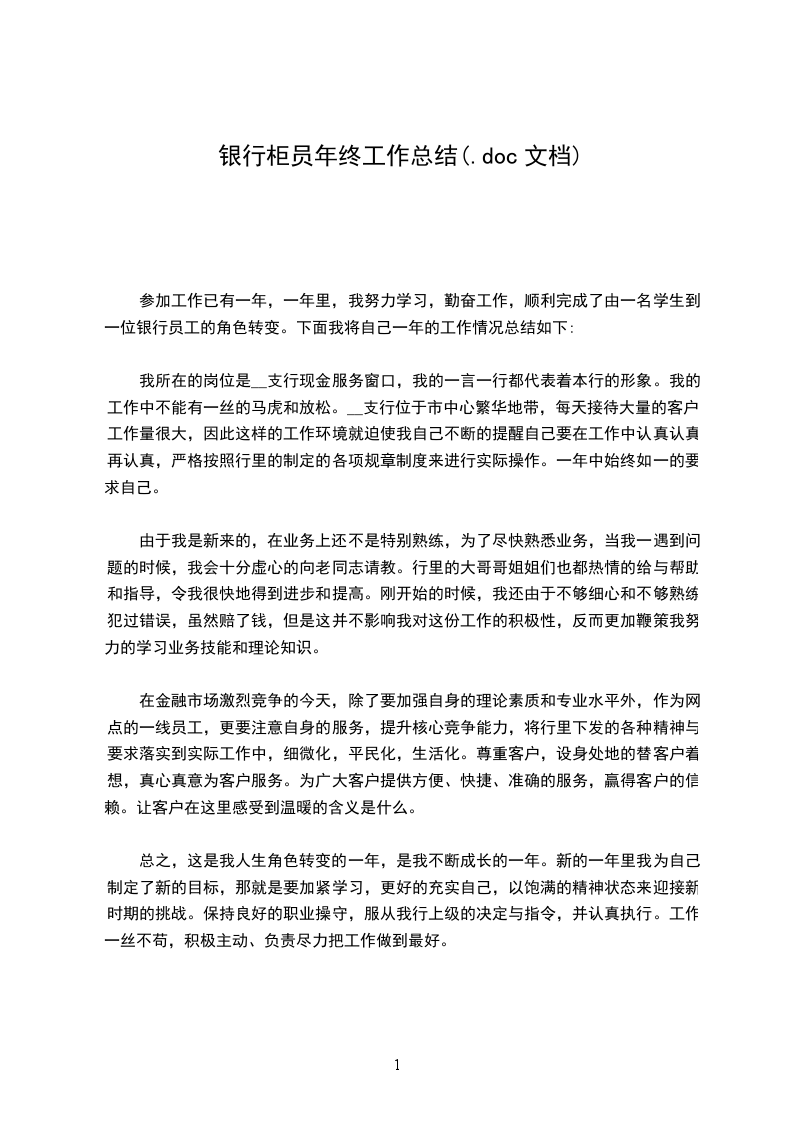 参加工作已有一年,一年里,我努力学习,勤奋工作,顺利完成了由一名学生到一位银行员工的角色转变。下面我将自己一年的工作情况总结如下: