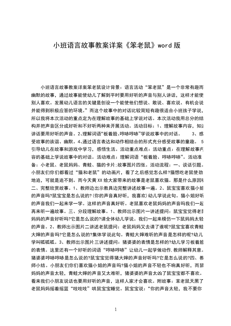 2、如果你是聪明的小耗子,你会怎么做呢?笨耗子的故事耗子妈妈摇她的宝宝:吱吱吱,快睡觉,蜡烛头给你吃个饱。小耗子说:不要你摇,你的声音细得不得了!请来大猫摇那小宝宝:妙妙妙,快睡觉,快睡觉,妙妙妙!小耗子说:你的嗓子真正好,甜得.不.得了.