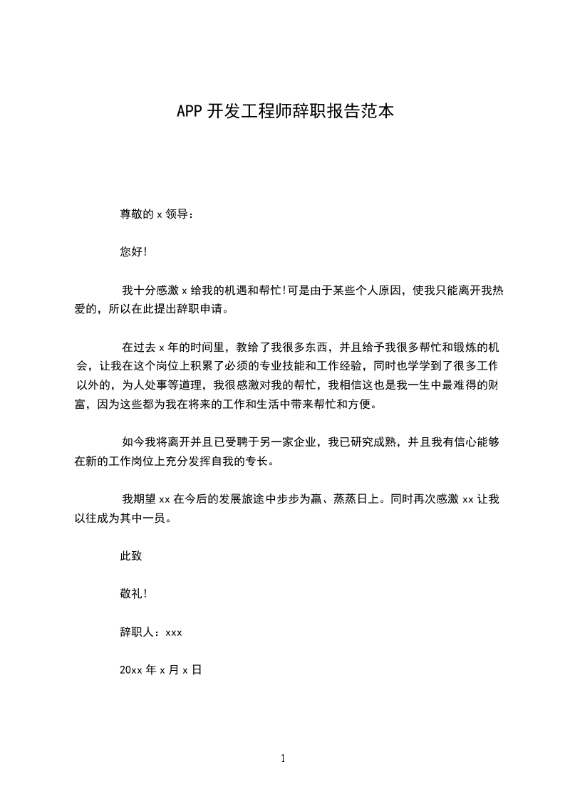 将来无论什么时候, 我都会为自己曾经是公司的一员而感到荣幸。 我确信在公司的这段工作经 历将是我整个职业生涯发展中相当重要的一部分。祝公司领导和所有同事身体健康、工作顺利! 再次对我的离职给公司带来的不便表示抱歉,同时我也希望公司能够体恤我的个人实 际,对我的申请予以考虑并批准。