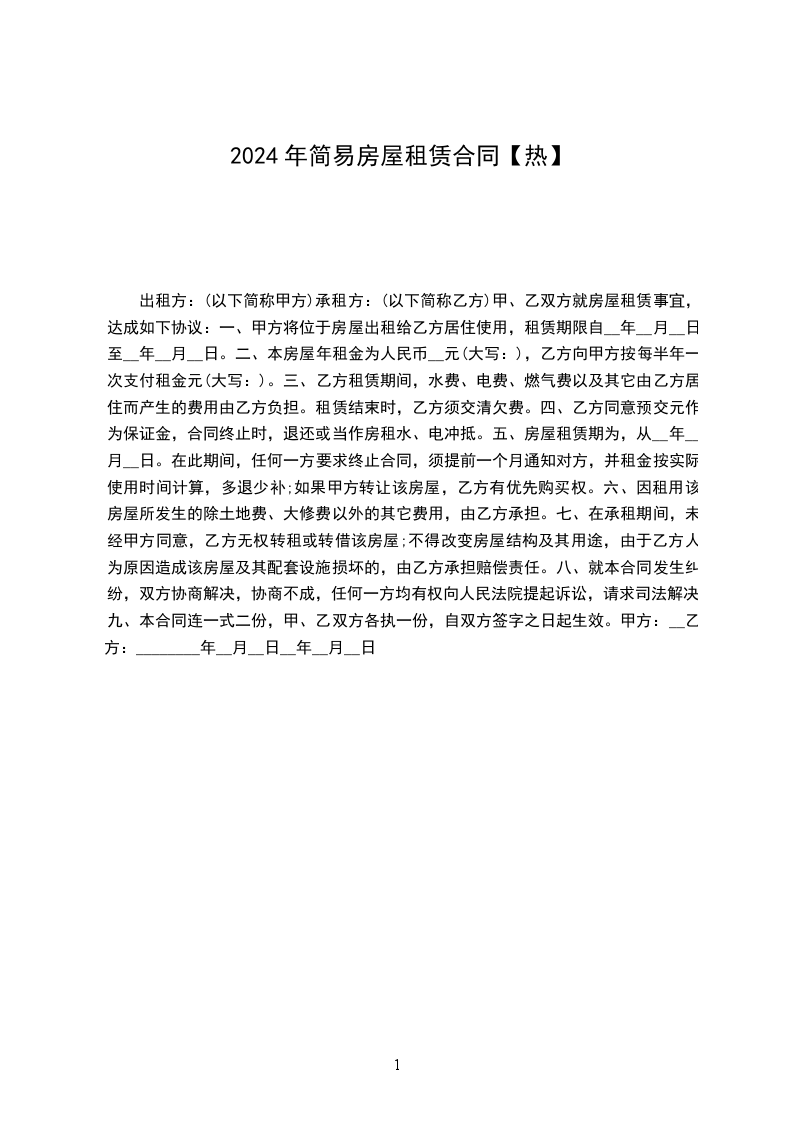 四、乙方同意预交__________元作为保证金,合同终止时,当作房租冲抵。