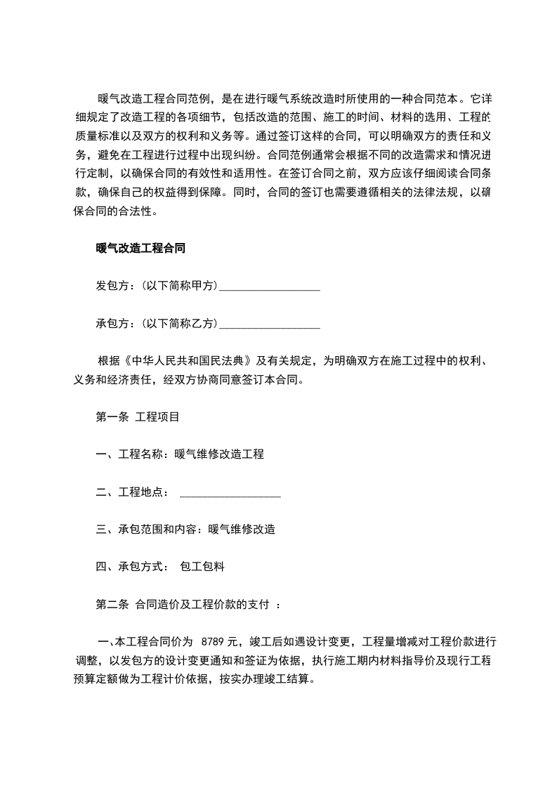 一、本工程合同价为8789元,竣工后如遇设计变更,工程量增减对工程价款进行调整,以发包方的设计变更通知和签证为依据,执行施工期内材料指导价及现行工程预算定额做为工程计价依据,按实办理竣工结算。