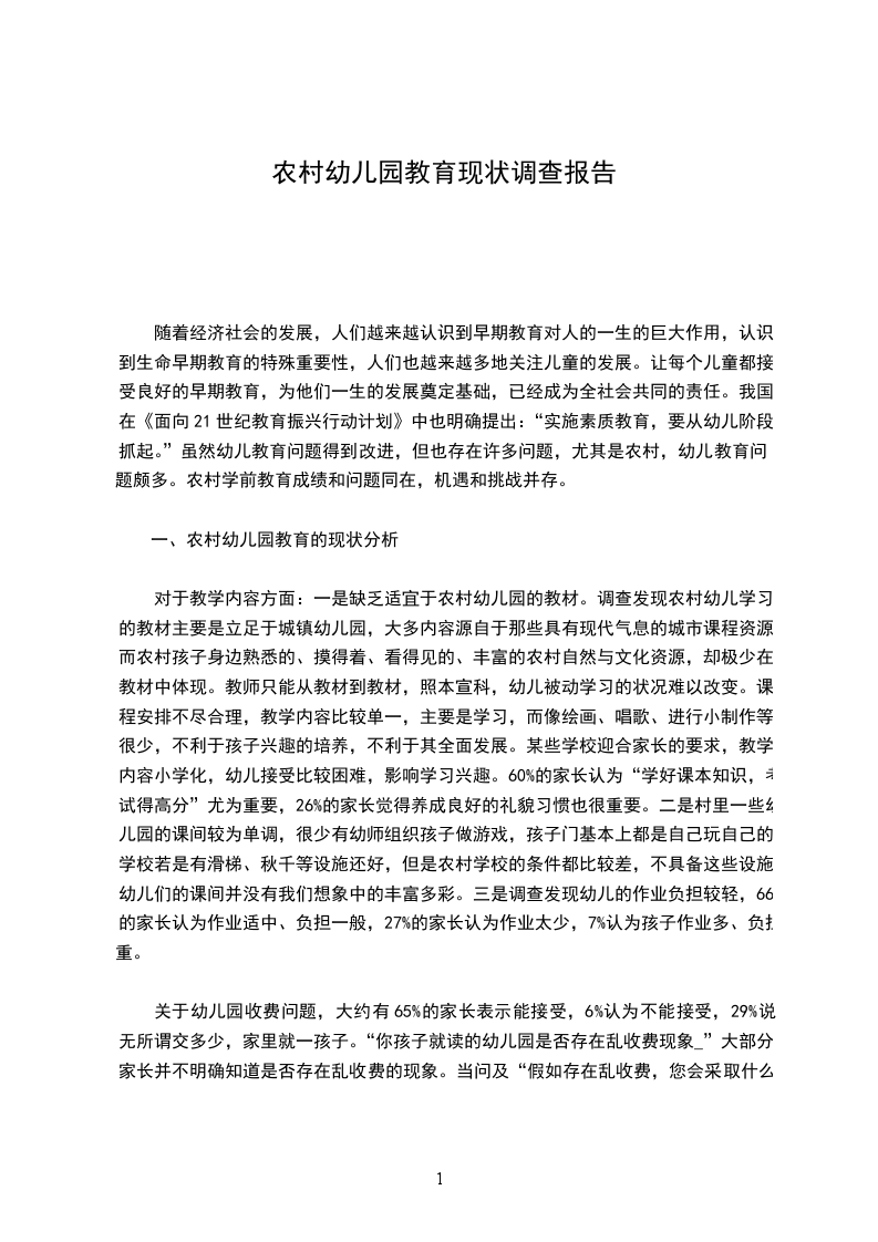 一、农村幼儿园教育的现状分析
