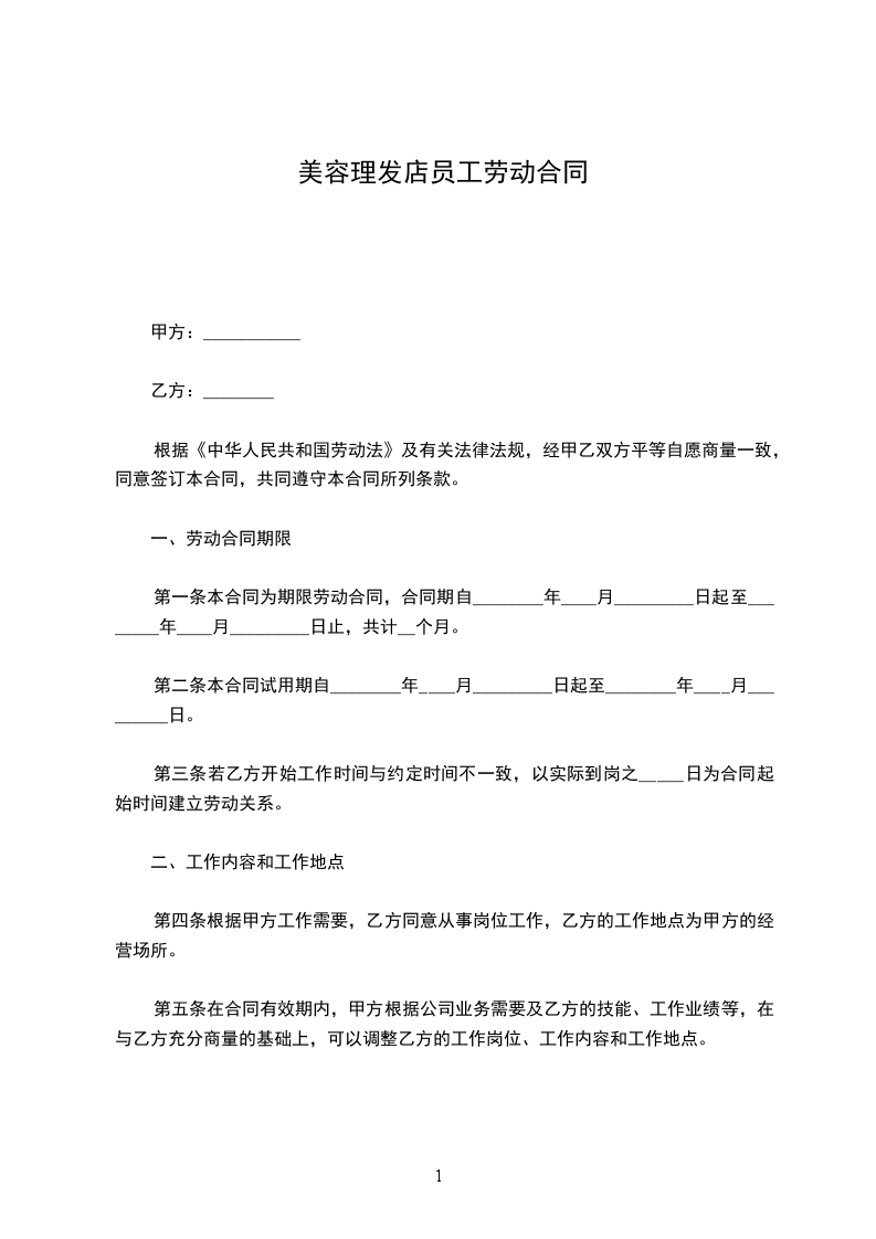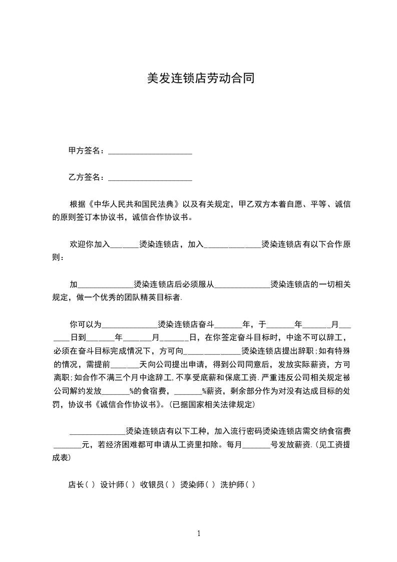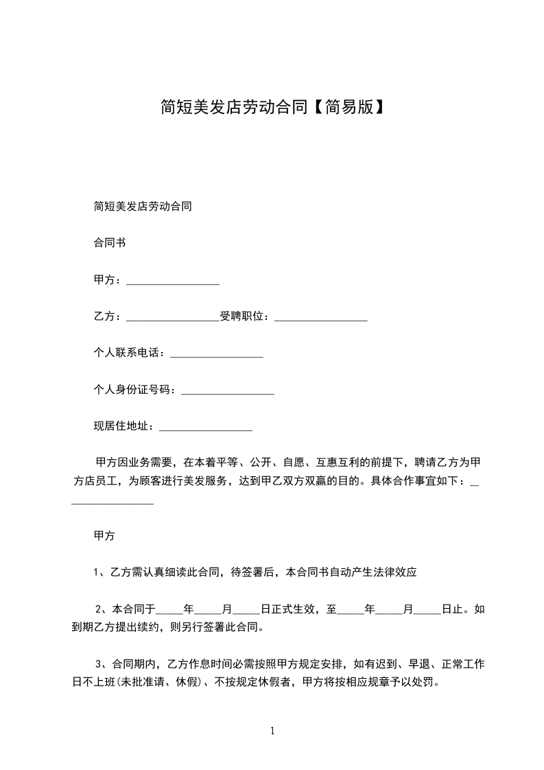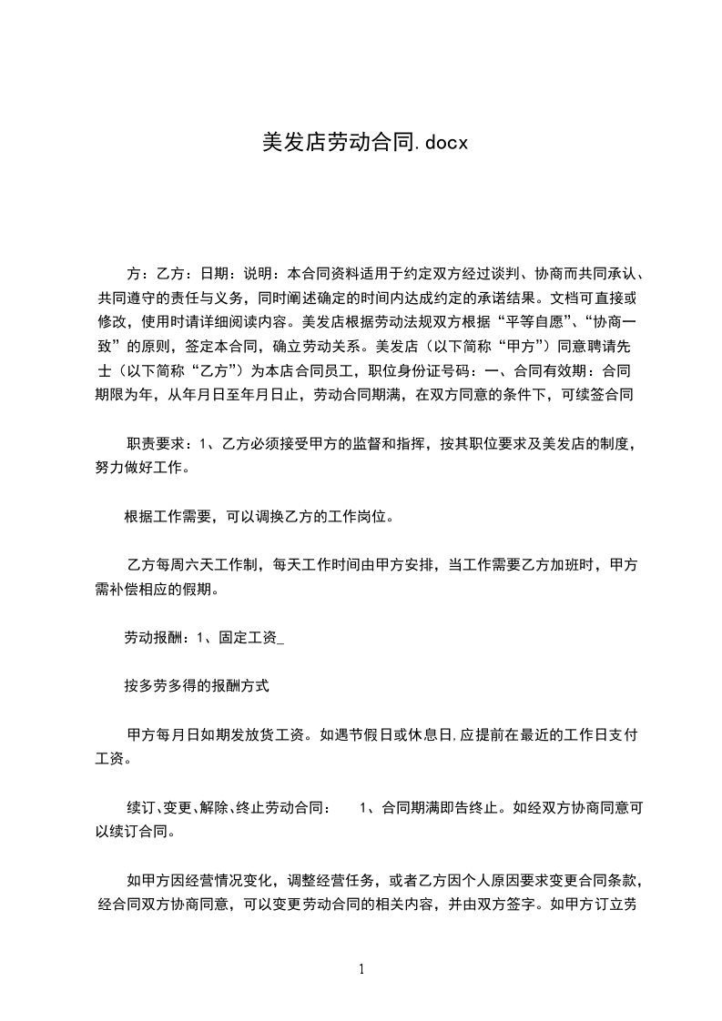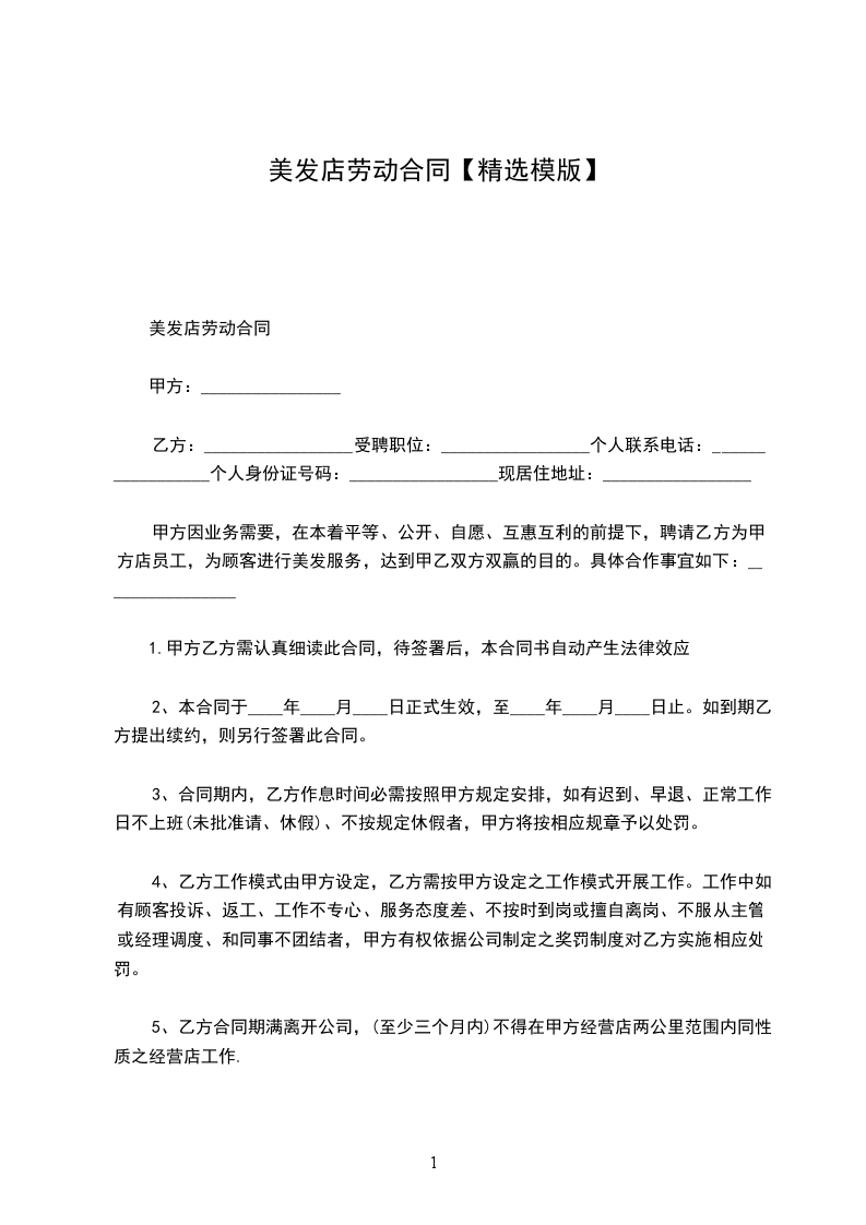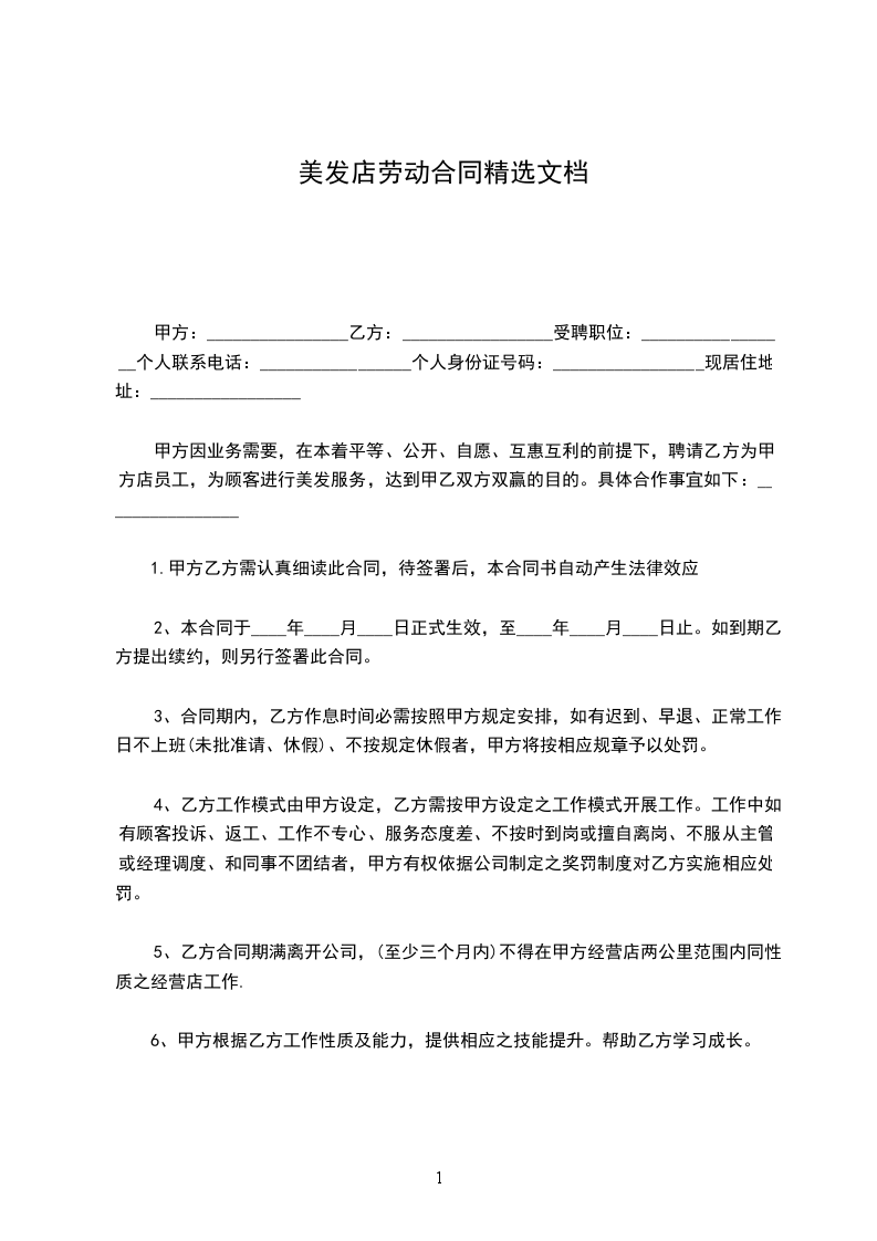 甲方因业务需要,在本着平等、公开、自愿、互惠互利的前提下,聘请乙方为甲方店员工,为顾客进行美发服务,达到甲乙双方双赢的目的。具体合作事宜如下: