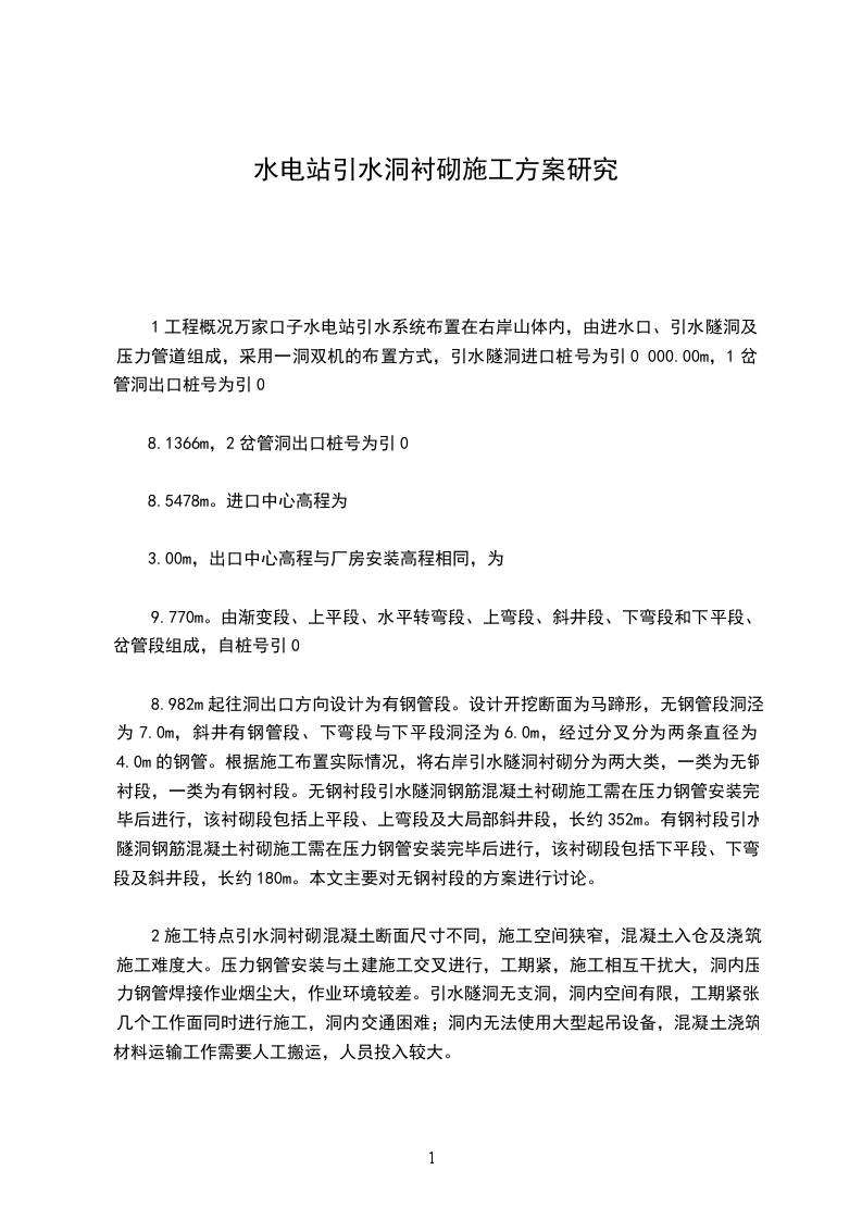 2施工特点引水洞衬砌混凝土断面尺寸不同,施工空间狭窄,混凝土入仓及浇筑施工难度大。压力钢管安装与土建施工交叉进行,工期紧,施工相互干扰大,洞内压力钢管焊接作业烟尘大,作业环境较差。引水隧洞无支洞,洞内空间有限,工期紧张,几个工作面同时进行施工,洞内交通困难;洞内无法使用大型起吊设备,混凝土浇筑材料运输工作需要人工搬运,人员投入较大。