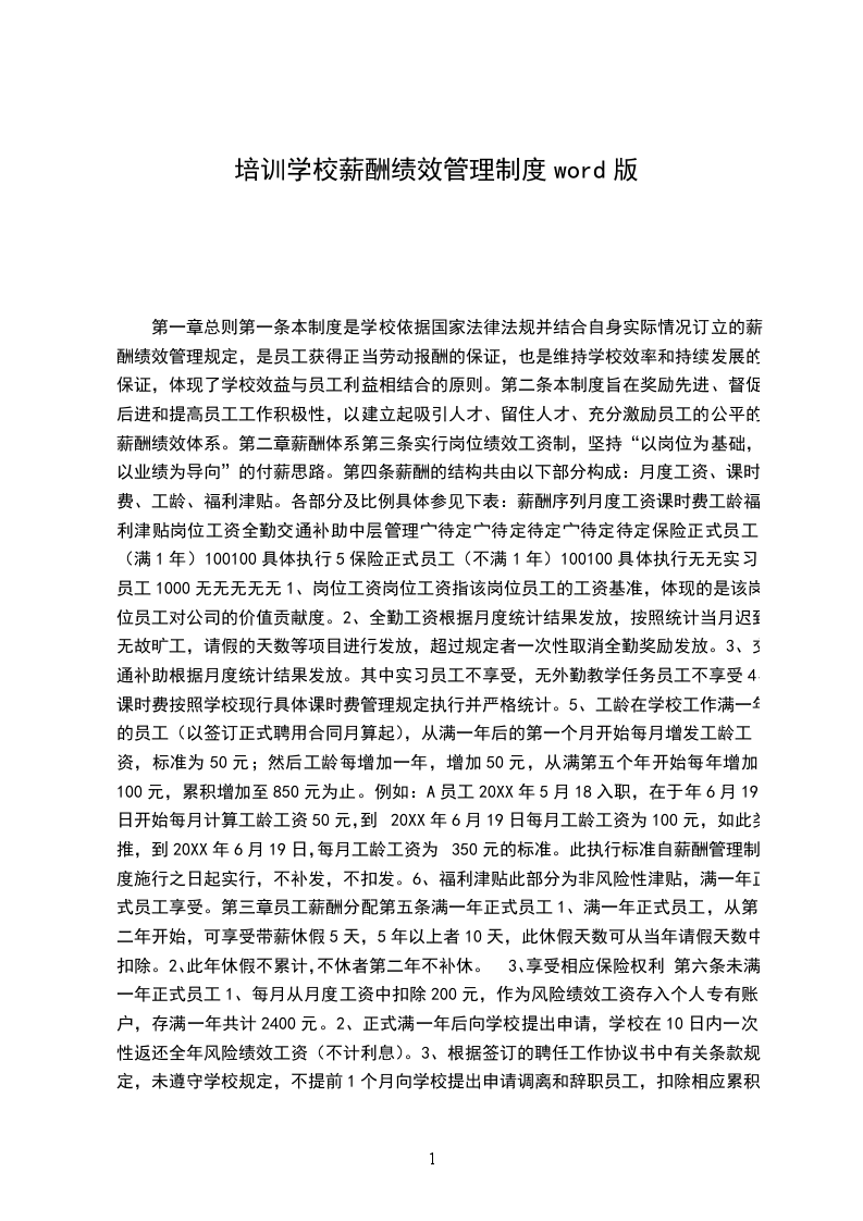 第一条本制度是学校依据国家法律法规并结合自身实际情况订立的薪酬绩效管理规定,是员工获得正当劳动报酬的保证,也是维持学校效率和持续发展的保证,体现了学校效益与员工利益相结合的原则。