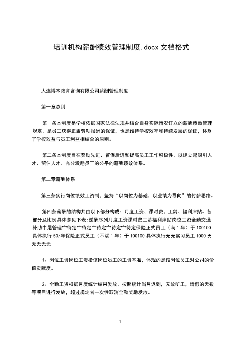 第四条薪酬的结构共由以下部分构成:月度工资、课时费、工龄、福利津贴。各部分及比例具体参见下表:逆酬序列月度工资课时费工龄福利津贴岗位工资全勤交通补助中层管理宀待定宀待定宀待定宀待定宀待定保险正式员工(满1年)于100100具体执行50/年保险正式员工(不满1年)于100100具体执行无无实习员工1000无无无无无
