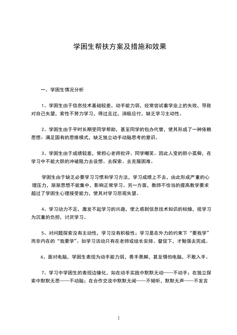 1、学困生由于信息技术基础较差,动手能力弱,经常尝试着学业上的失败,导致对自己失望,索性不努力学习,得过且过,消极应付,缺乏学习主动性。