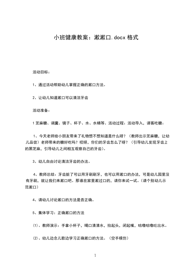 1、通过活动帮助幼儿掌握正确的漱口方法。