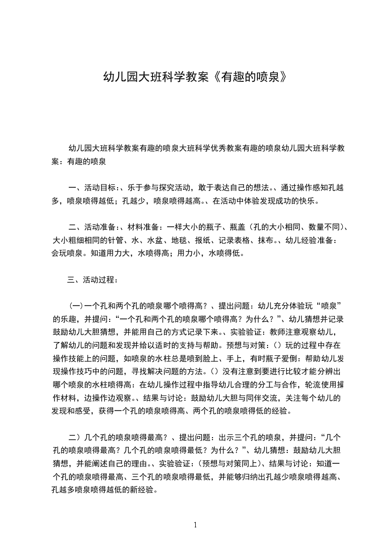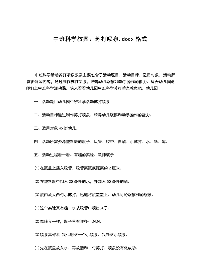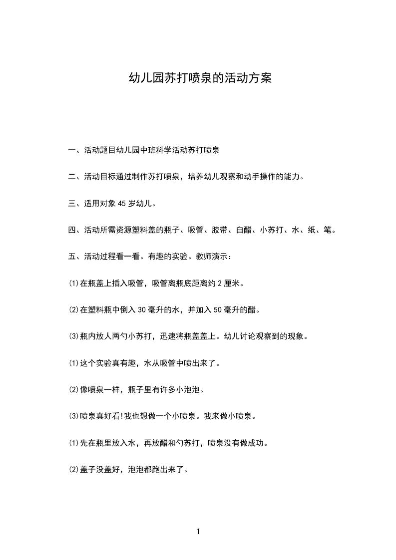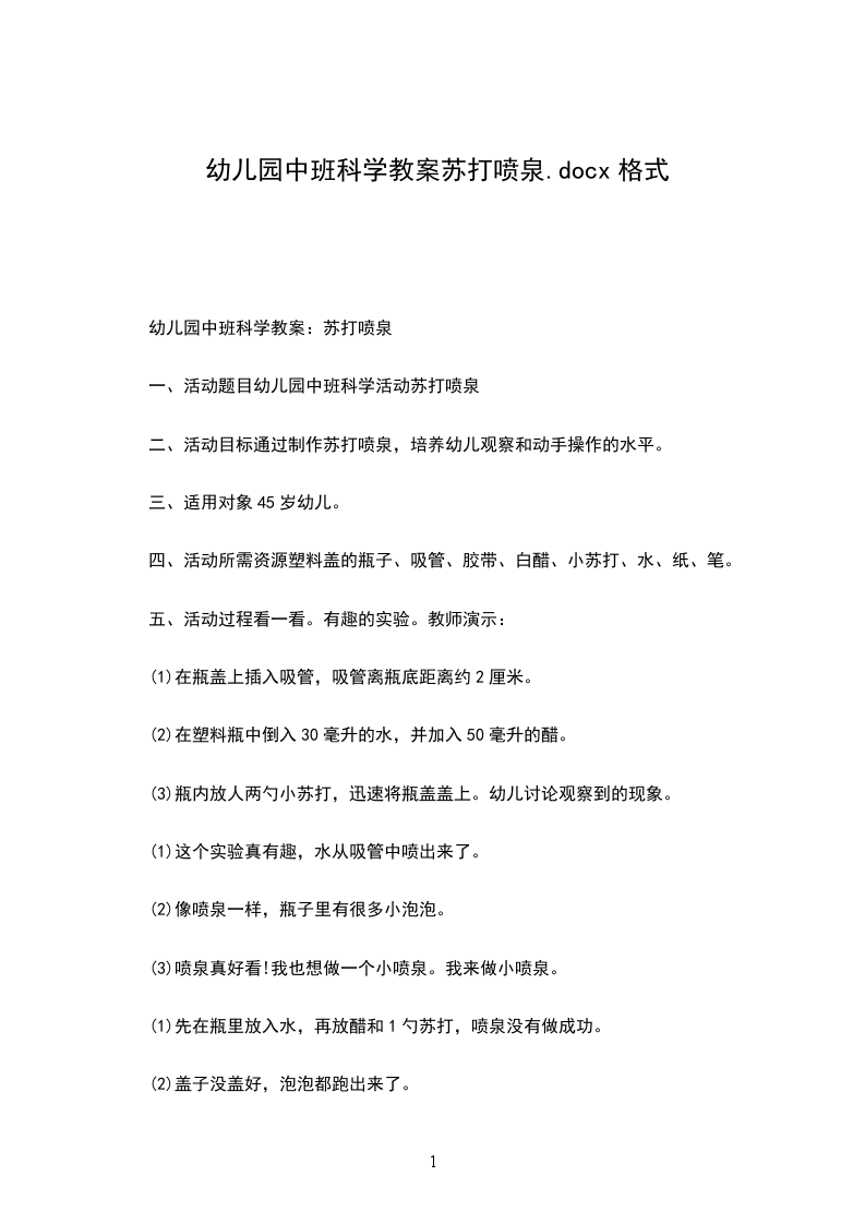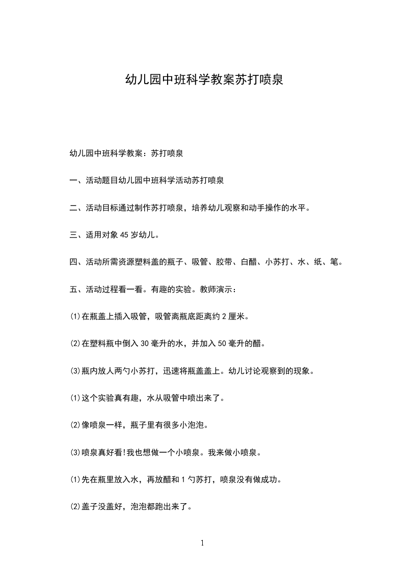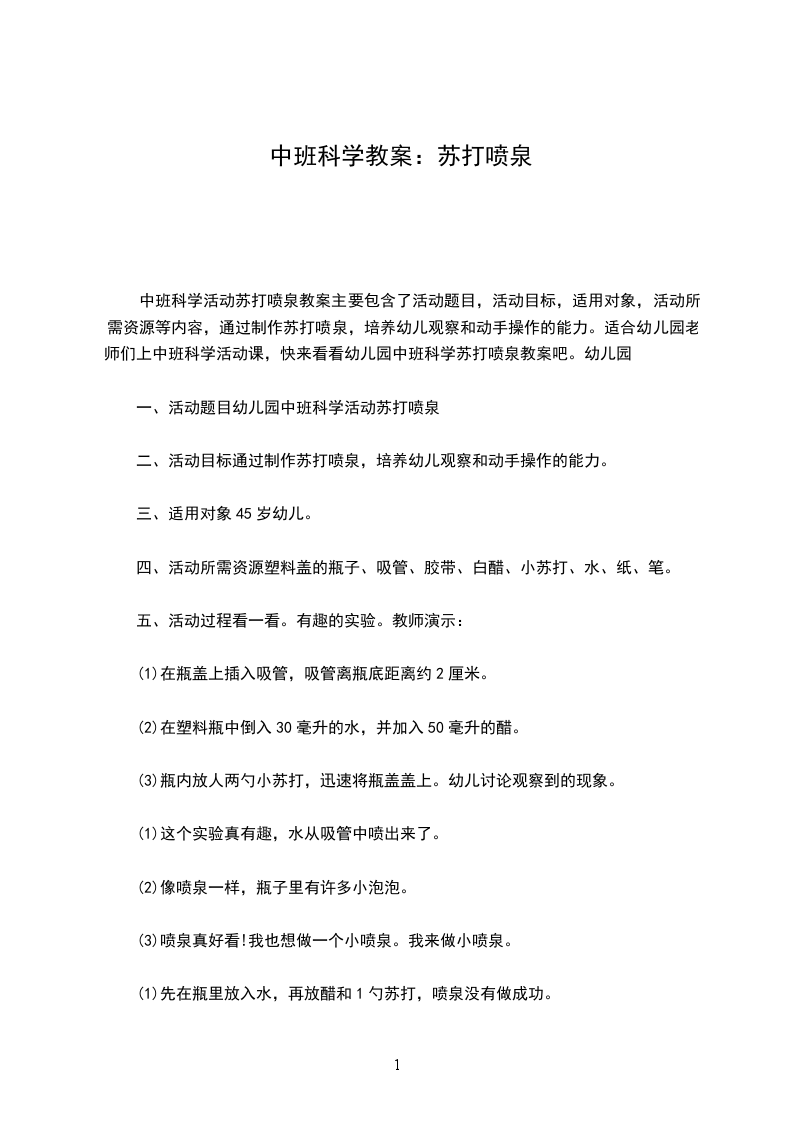 一、活动题目幼儿园中班科学活动苏打喷泉