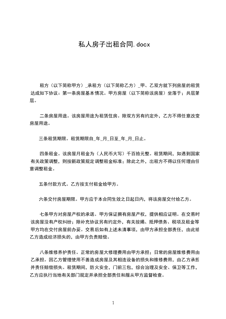 2、甲方提供完好的房屋、设施、设备,乙方应注意爱护,不得破坏房屋装修、结构及设施、设备,否则应按价赔偿。如使用中有非人为损坏,应由甲方修理。