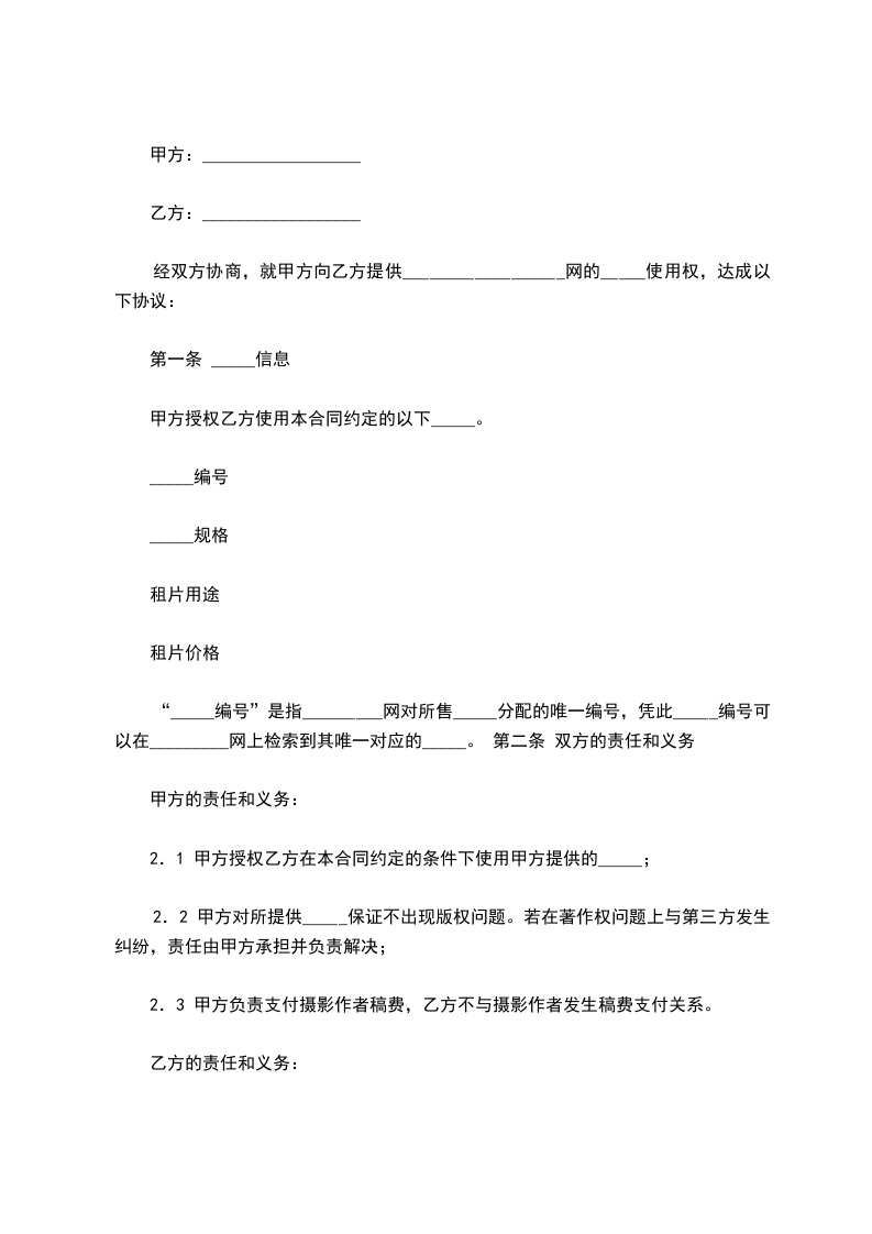 经双方协商,就甲方向乙方提供__________________网的_____使用权,达成以下协议: