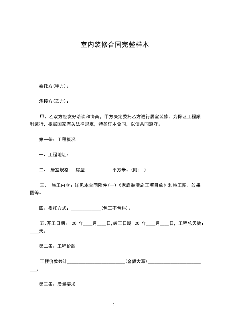 甲、乙双方经友好洽谈和协商,甲方决定委托乙方进行居室装修。为保证工程顺利进行,根据国家有关法律规定,特签订本合同,以便共同遵守。