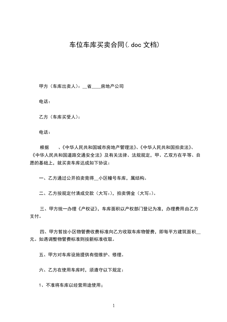 根据 、《中华人民共和国城市房地产管理法》、《中华人民共和国拍卖法》、《中华人民共和国道路交通安全法》及有关法律、法规规定,甲、乙双方在平等、自愿的基础上,就买卖车库达成如下协议: