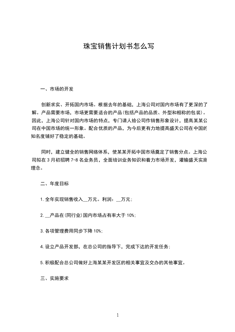 珠宝销售计划书怎么写10