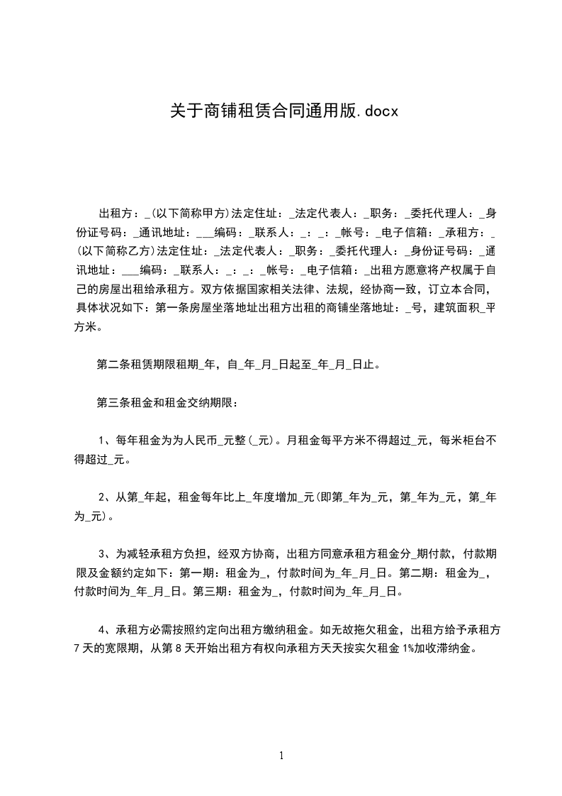 出租方:_(以下简称甲方)法定住址:_法定代表人:_职务:_委托代理人:_身份证号码:_通讯地址:___编码:_联系人:_:_:_帐号:_电子信箱:_承租方:_(以下简称乙方)法定住址:_法定代表人:_职务:_委托代理人:_身份证号码:_通讯地址:___编码:_联系人:_:_:_帐号:_电子信箱:_出租方愿意将产权属于自己的房屋出租给承租方。双方依据国家相关法律、法规,经协商一致,订立本合同,具体状况如下:第一条房屋坐落地址出租方出租的商铺坐落地址:_号,建筑面积_平方米。