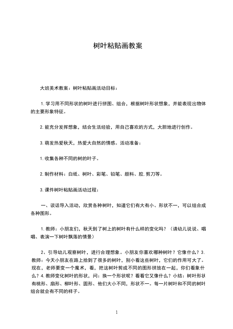 2、鼓励幼儿多开动脑筋,用树叶拼出多种形象,培养幼儿初步表现美的能力。