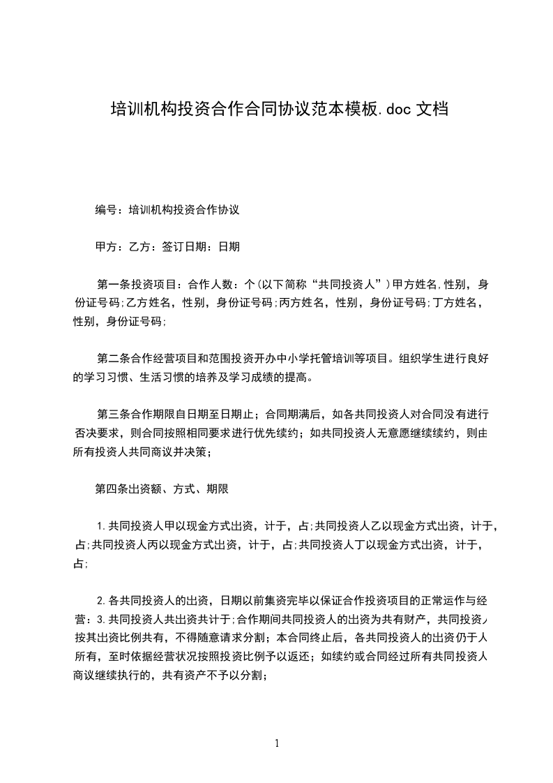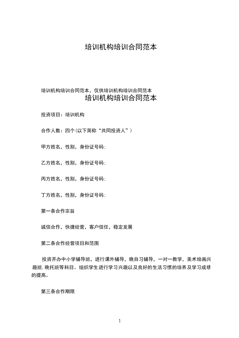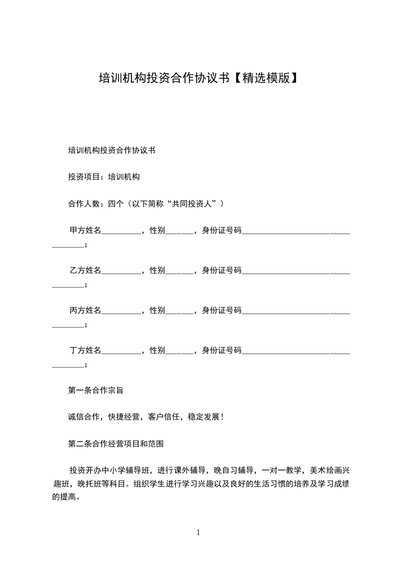 第一条投资项目:合作人数:个(以下简称“共同投资人”)甲方姓名,性别,身份证号码;乙方姓名,性别,身份证号码;丙方姓名,性别,身份证号码;丁方姓名,性别,身份证号码;