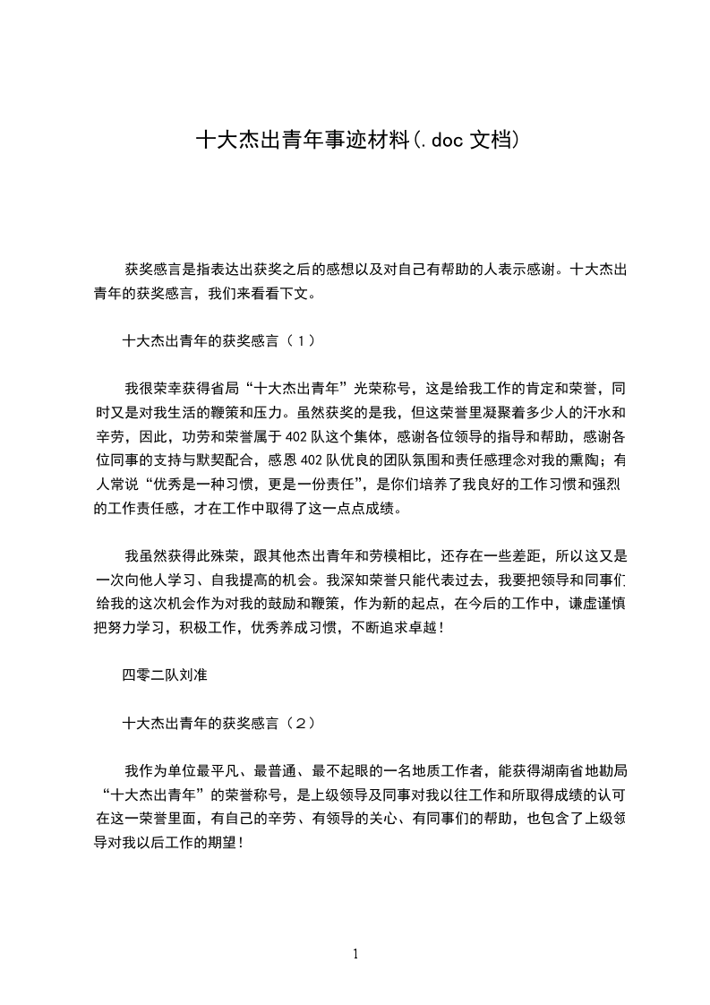十大杰出青年的获奖感言(1)