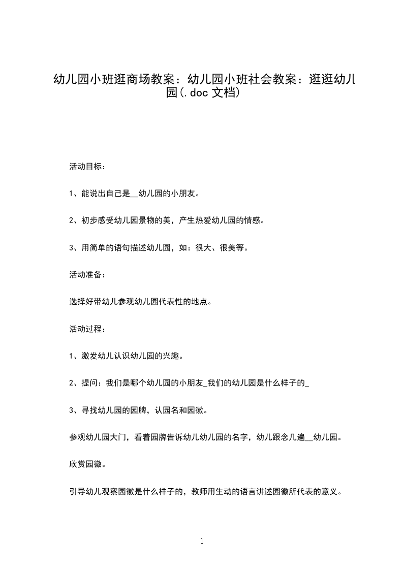 参观幼儿园大门,看着园牌告诉幼儿幼儿园的名字,幼儿跟念几遍__幼儿园。