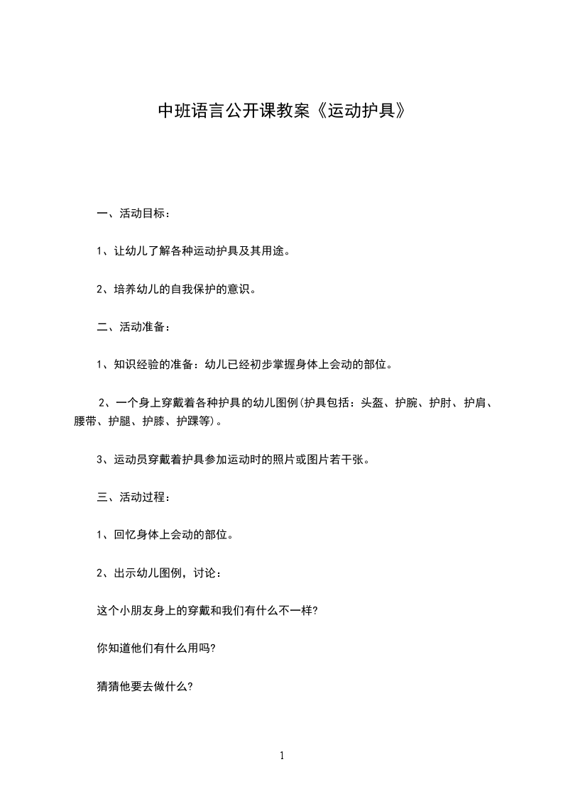 让幼儿体会到运动护具对运动安全的重要性,从而激发幼儿在运动中穿戴运动护具的积极性,提高幼儿在运动中的自我保护意识。