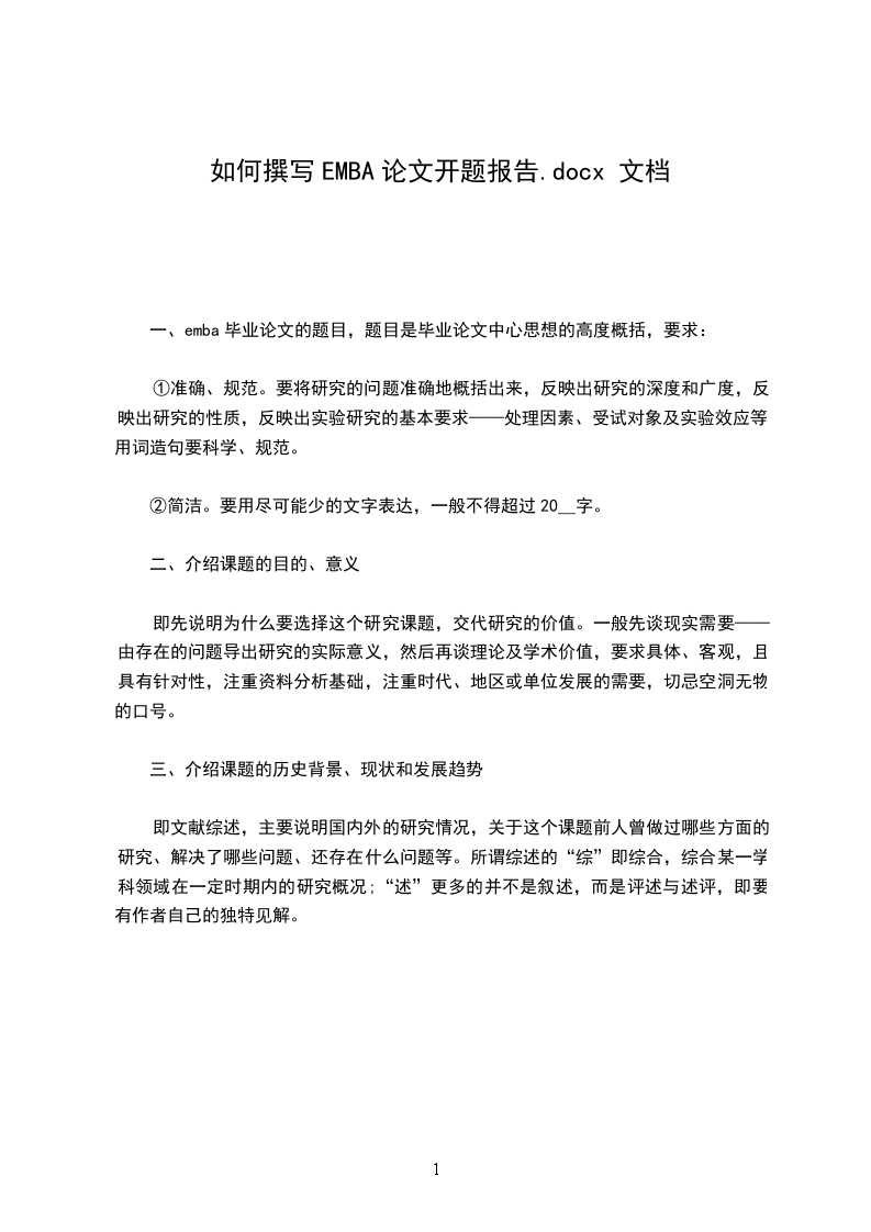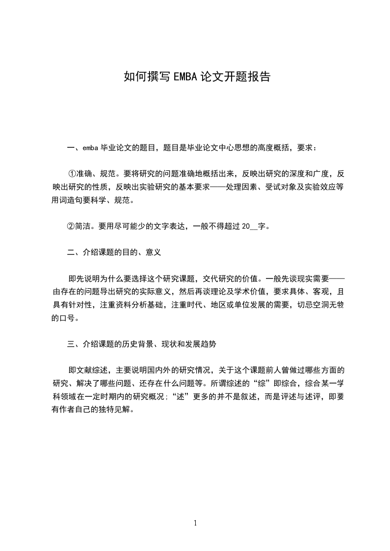 一、emba毕业论文的题目,题目是毕业论文中心思想的高度概括,要求: