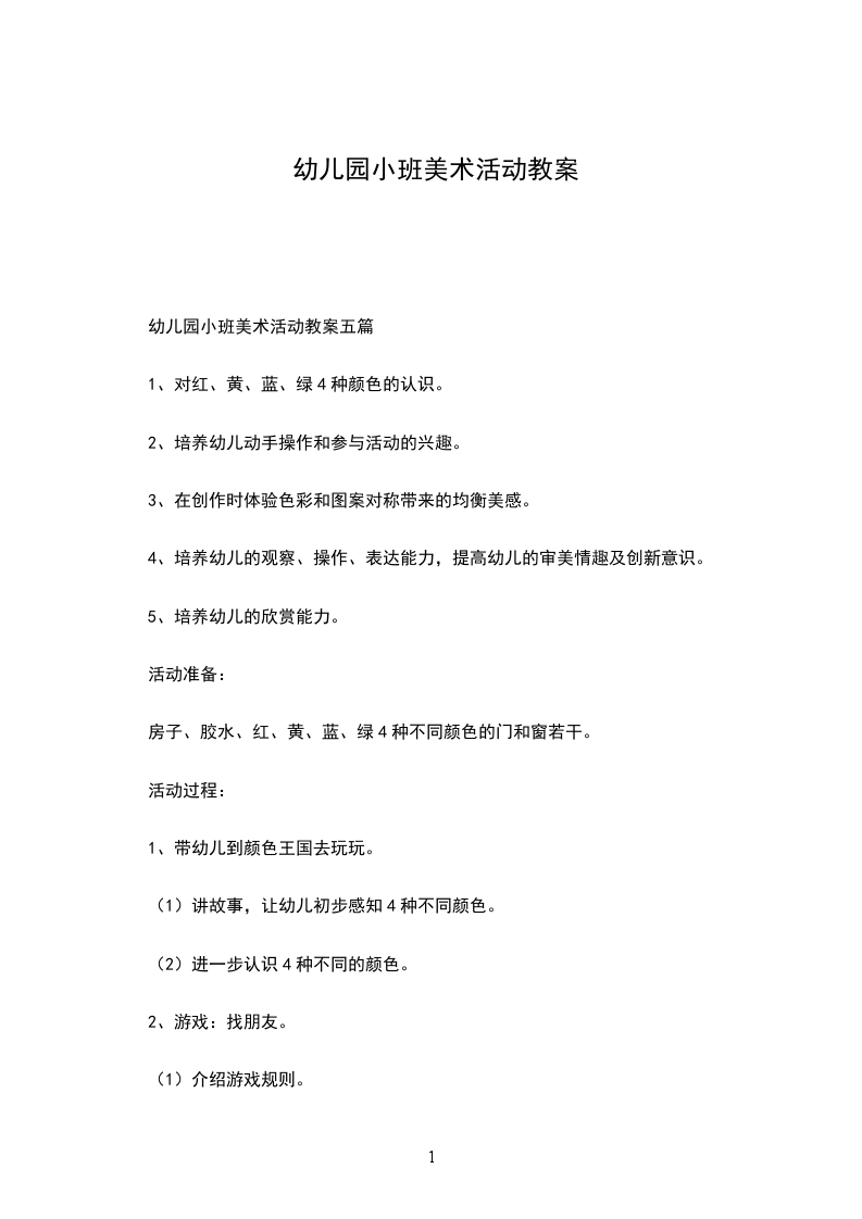 幼儿园小班美术活动教案五篇