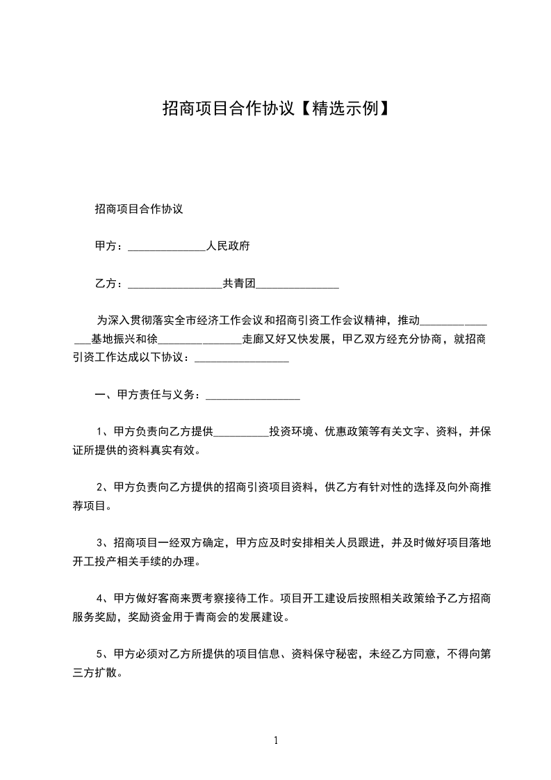 1、甲方负责提供当地的投资环境、基本情况、优惠政策等有关文字、图片资料给乙方,并保证所提供资料的有效性。