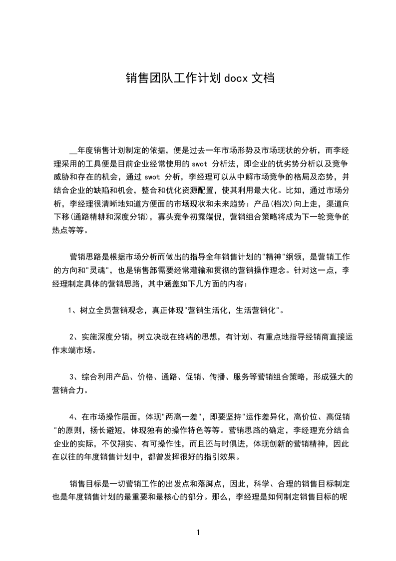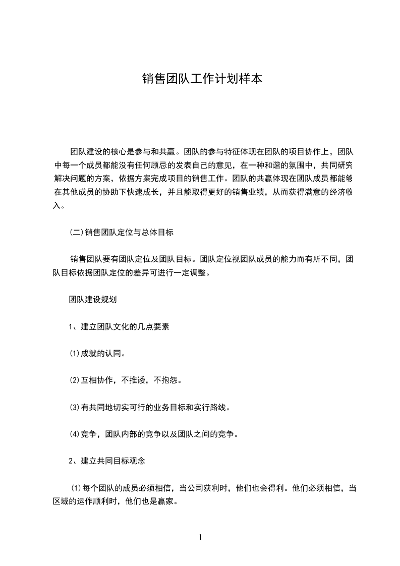 销售团队工作计划书3篇篇2