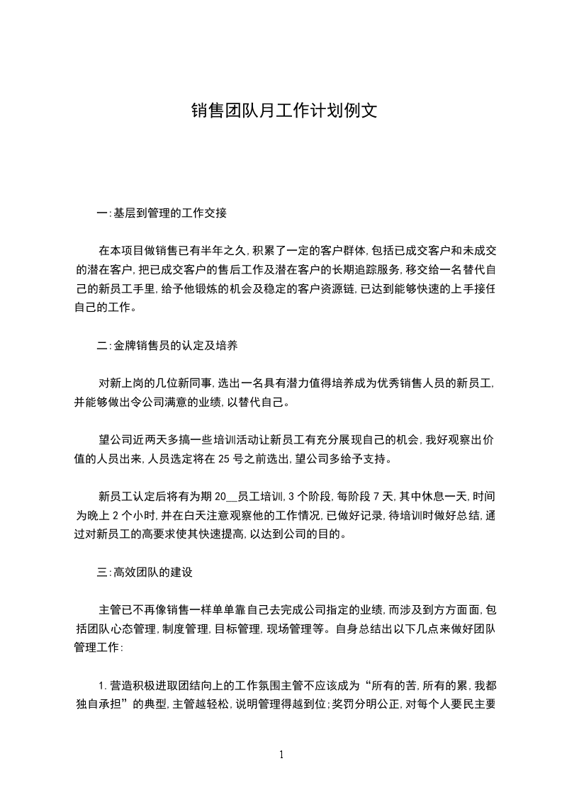 销售团队工作计划书3篇篇3