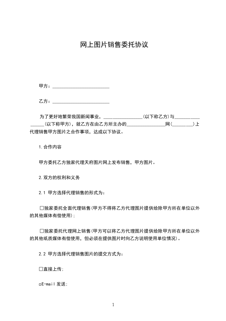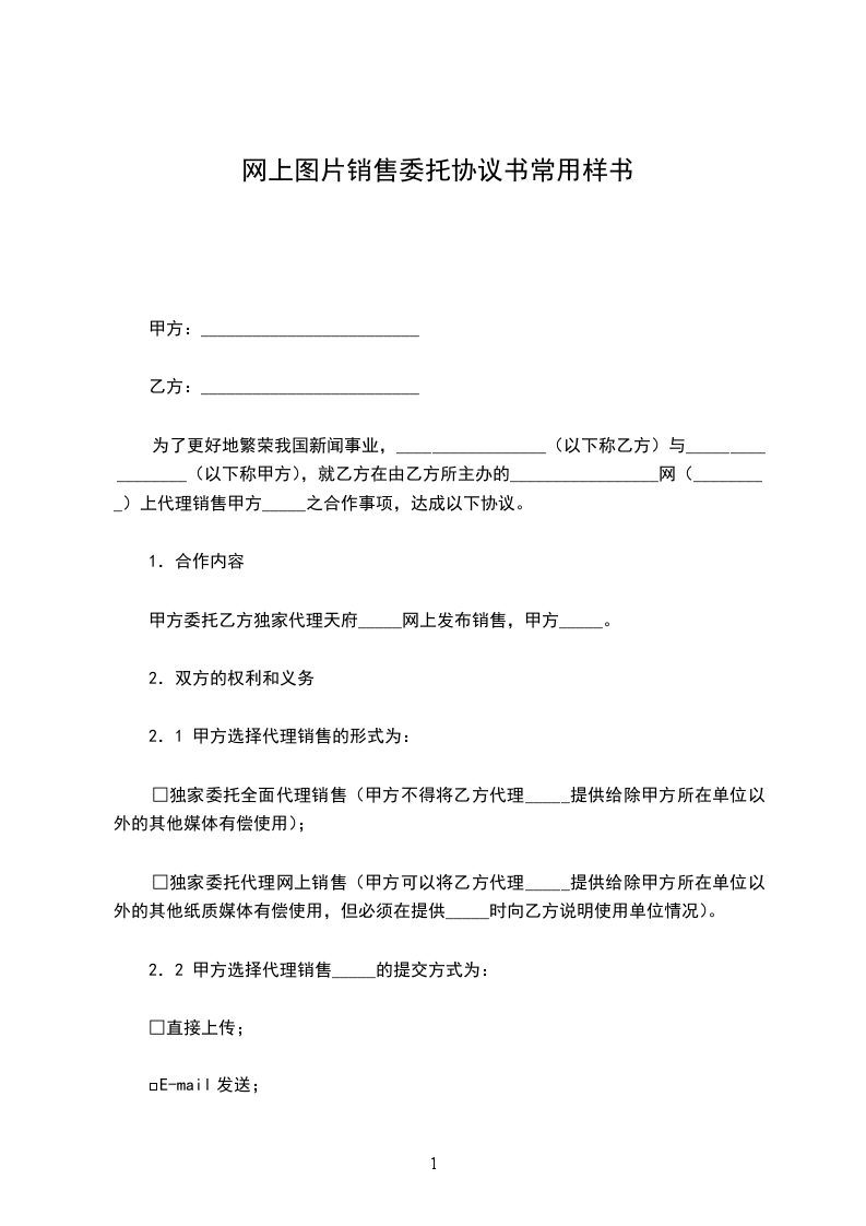 □独家委托代理网上销售(甲方可以将乙方代理_____提供给除甲方所在单位以外的其他纸质媒体有偿使用,但必须在提供_____时向乙方说明使用单位情况)。