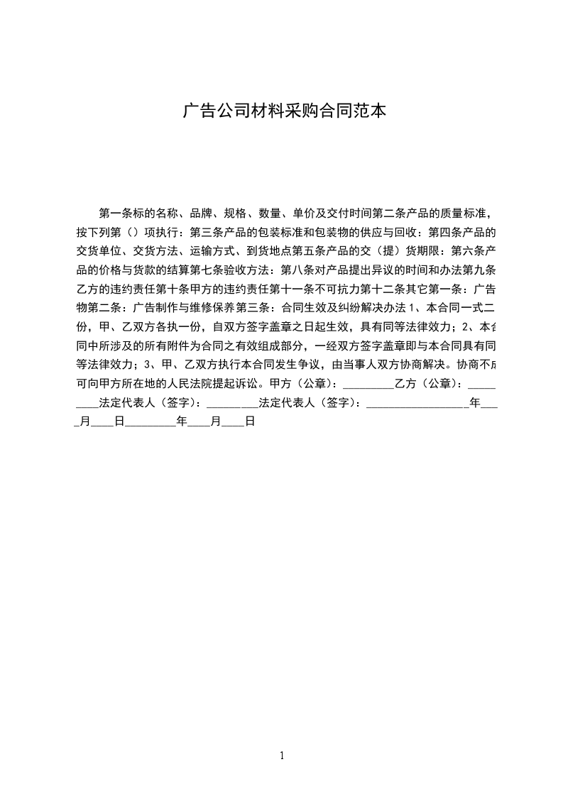 广告公司材料采购合同【二】