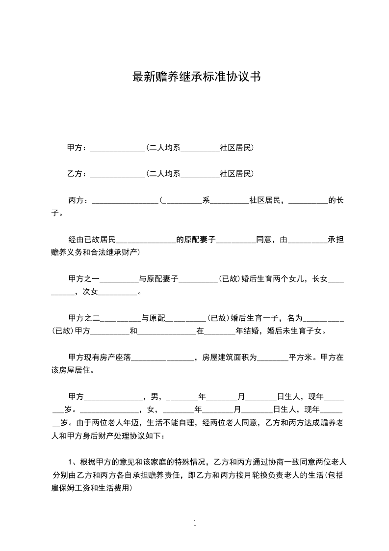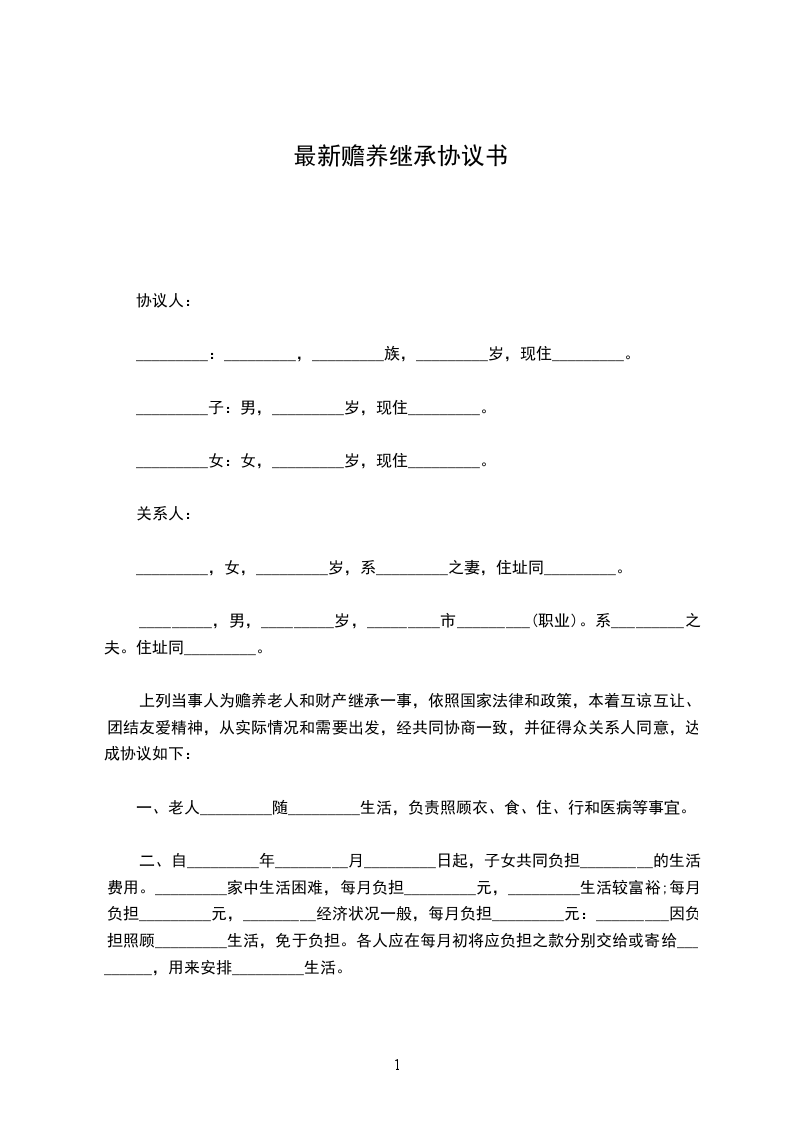 上列当事人为赡养老人和财产继承一事,依照国家法律和政策,本着互谅互让、团结友爱精神,从实际情况和需要出发,经共同协商一致,并征得众关系人同意,达成协议如下: