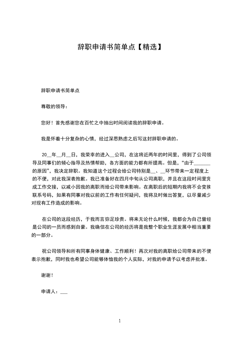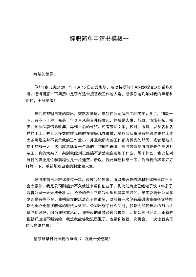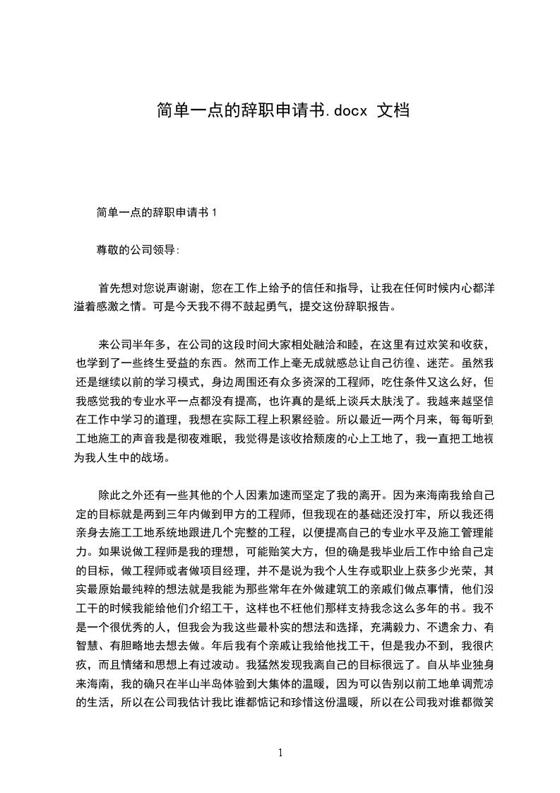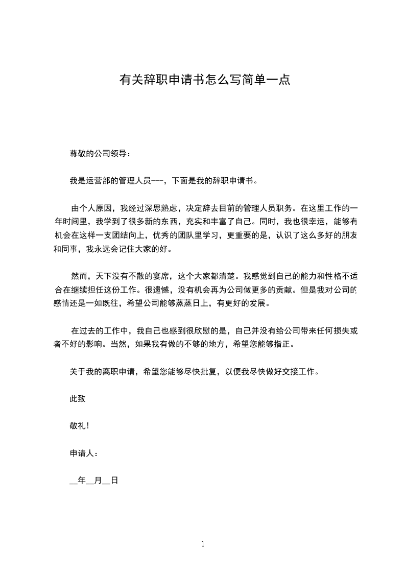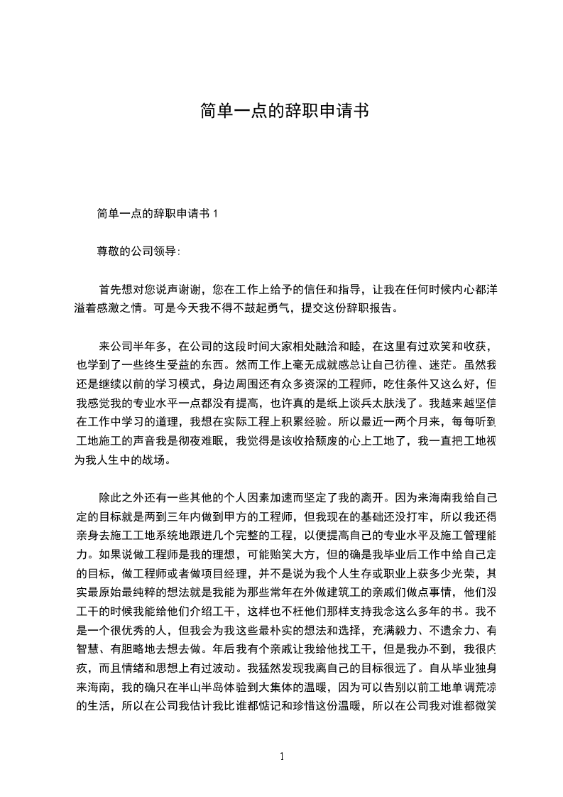 简单一点的辞职申请书1