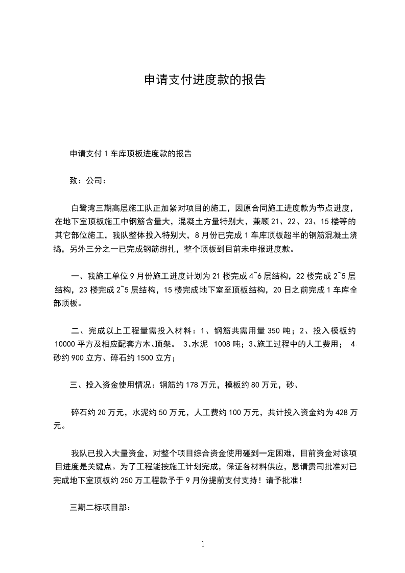 进度款申请书
